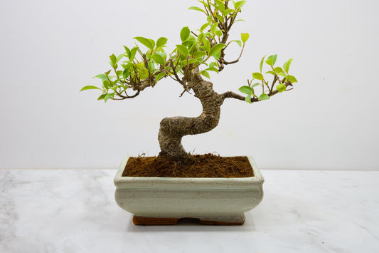 Banyan Fig Bonsai S Trunk - 18cm Cream Ceramic Pot + Care Kit