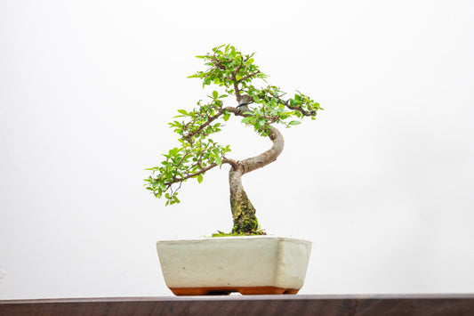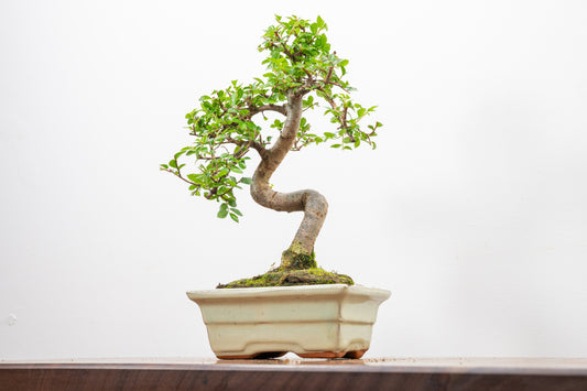 Chinese Elm Bonsai and Care Kit in 15cm Cream Ceramic Pot