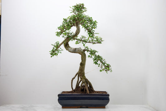 Chinese Elm Bonsai and Care Kit in 30cm Navy Blue Ceramic Pot