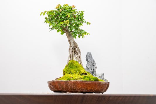 Chinese Elm Exposed Root/ Rock Planting Bonsai & Care Kit in 22cm Ceramic Dish