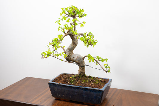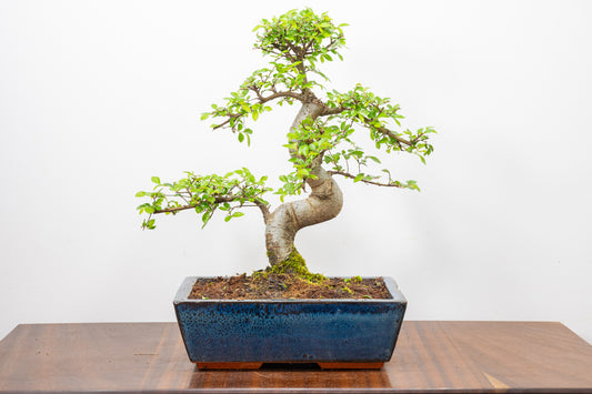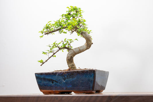 Chinese Elm 'MAME' Bonsai in 11 cm Dark Blue Ceramic Pot + Care Kit
