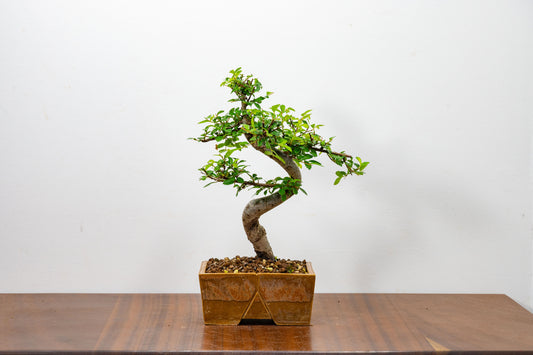 Chinese Elm Bonsai in 13cm Venus Brown DEEP Ceramic Dish+ Care Kit