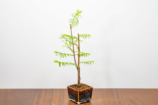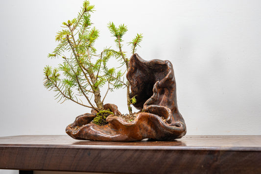 Spruce Bonsai in Ember Brown Ceramic Abstract Vessel