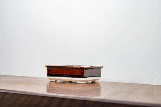 Dark Brown Rectangular White Stoneware Bonsai Pot 11cm