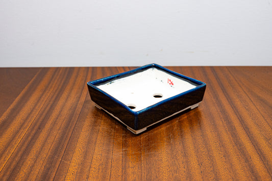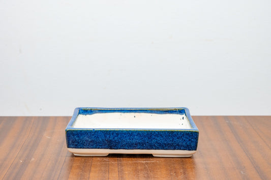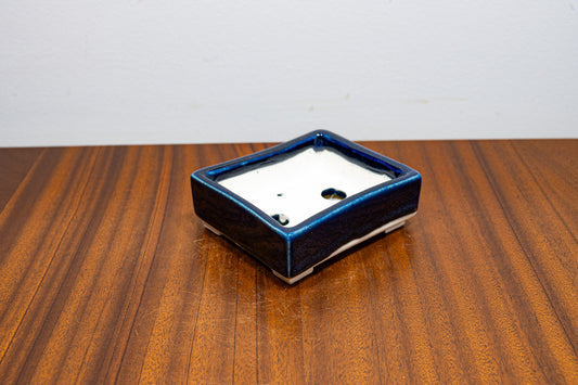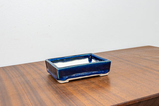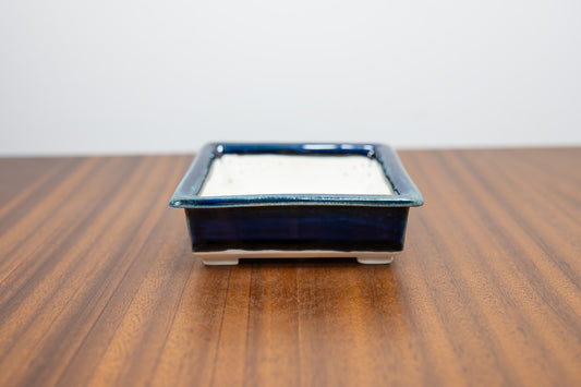 Dark Blue Opal Rectangular White Stoneware Bonsai Pot 10cm