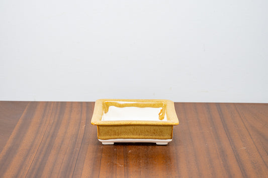 Dark Brown Rectangular White Stoneware Bonsai Pot 10cm