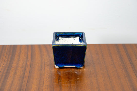 Dark Blue Opal White Stoneware Cascade Bonsai Cube Pot 7cm