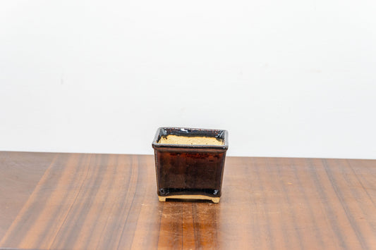 Dark Brown Mini Cascade Cube Ceramic Bonsai Pot 4.5cm