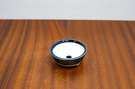 Dark Blue Opal - White Stoneware Round MAME Bonsai Pot 5.5cm