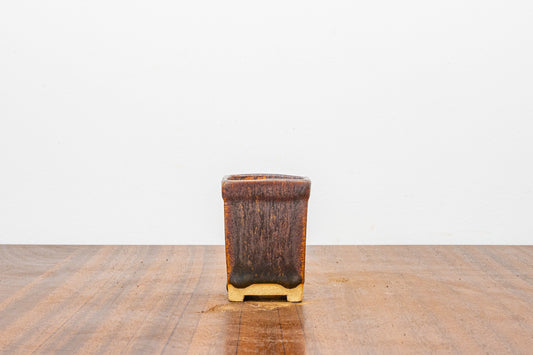 Dark Brown Cascade Cube Ceramic Bonsai Pot 7cm