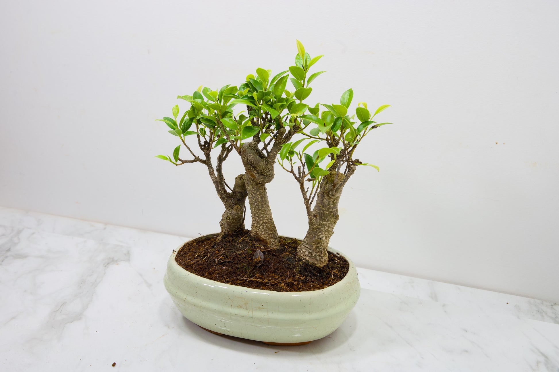 Banyan Fig Bonsai 3 Tree Group - 20cm Cream Ceramic Pot + Care Kit