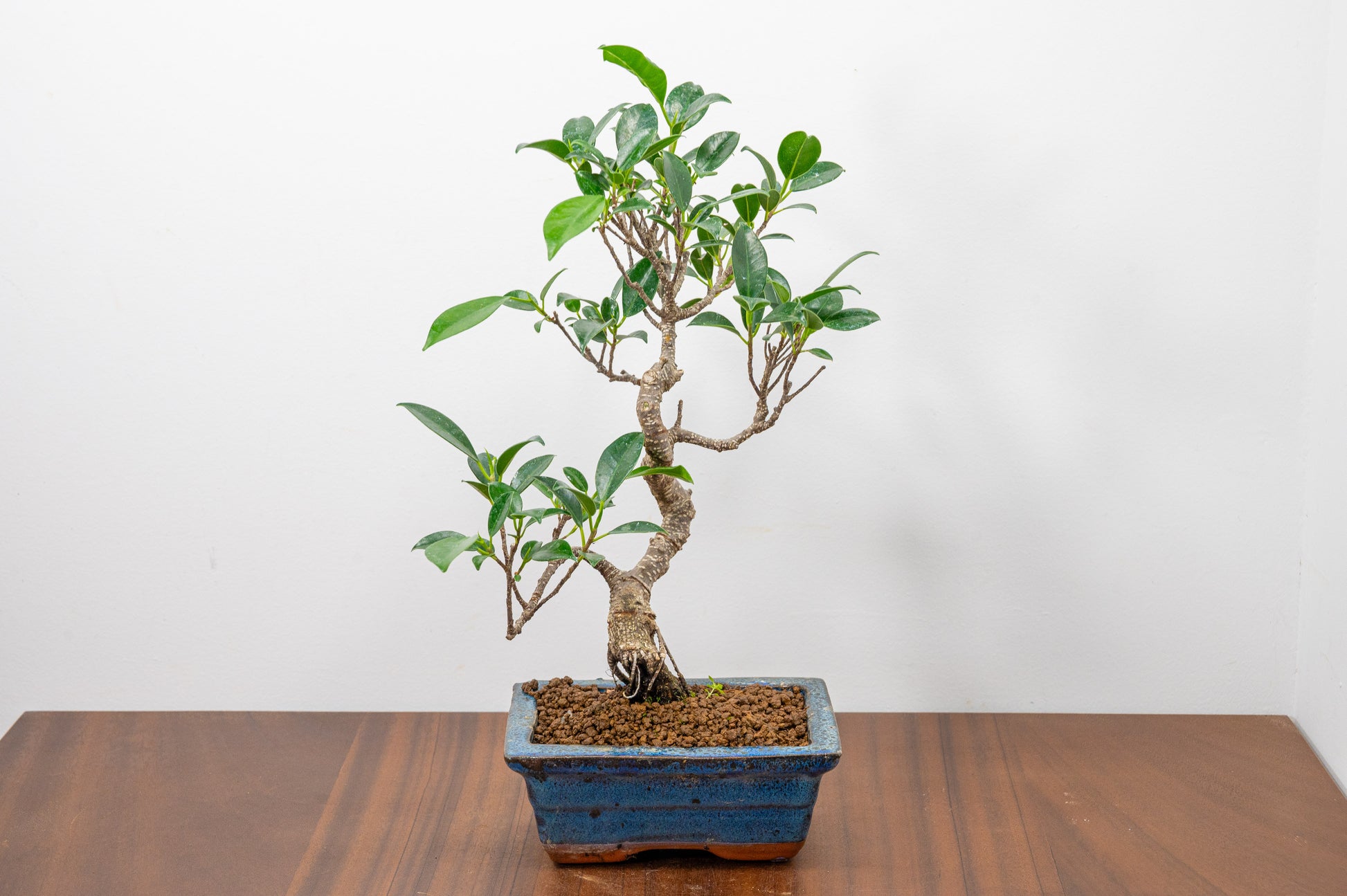 Banyan Fig Bonsai S Trunk - 15cm Blue Ceramic Pot + Care Kit