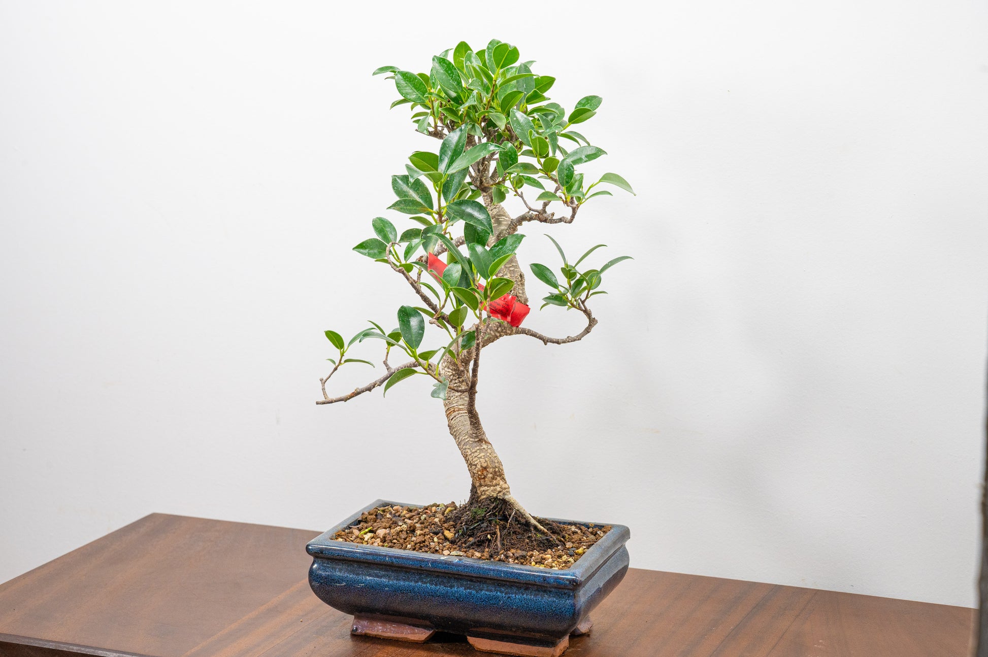 Banyan Fig Bonsai S Trunk - 18cm Blue Ceramic Pot + Care Kit