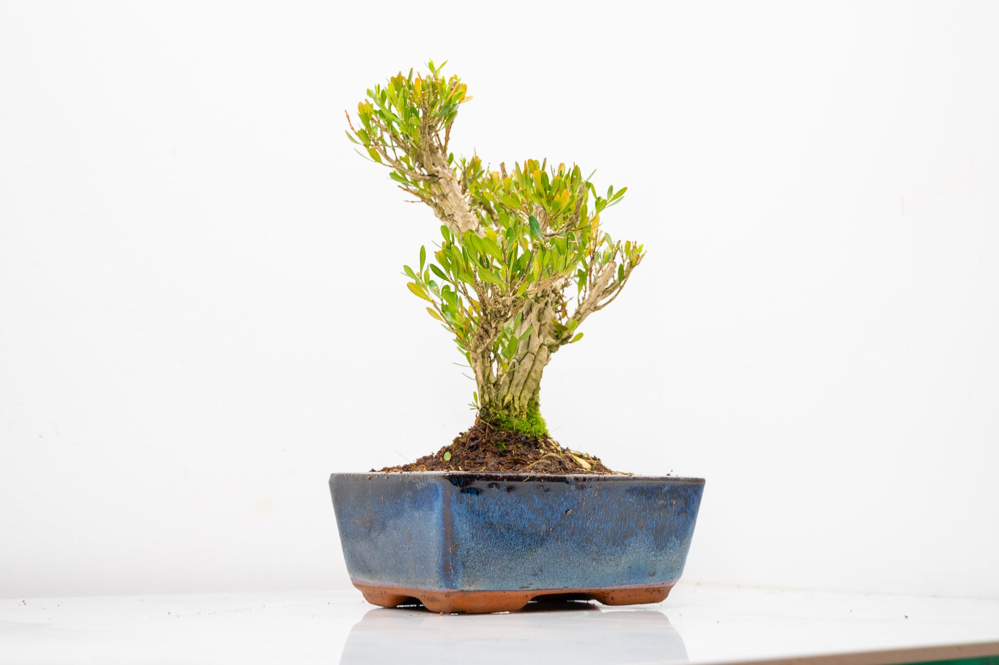 Chinese Box Bonsai Tree Informal Style - 15cm Blue Ceramic Pot