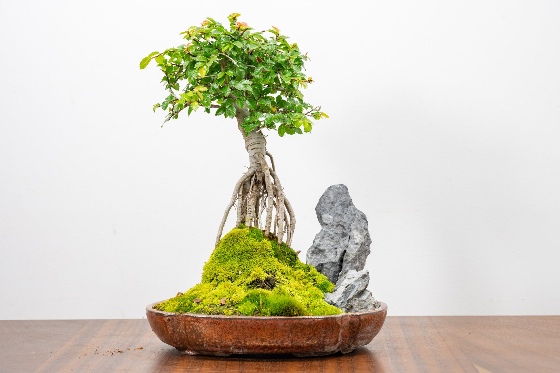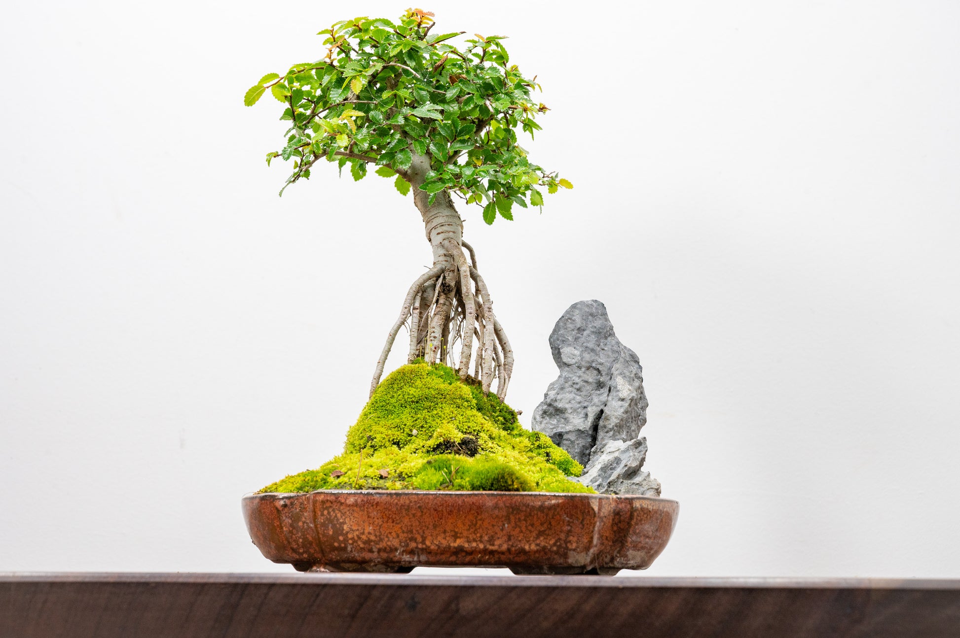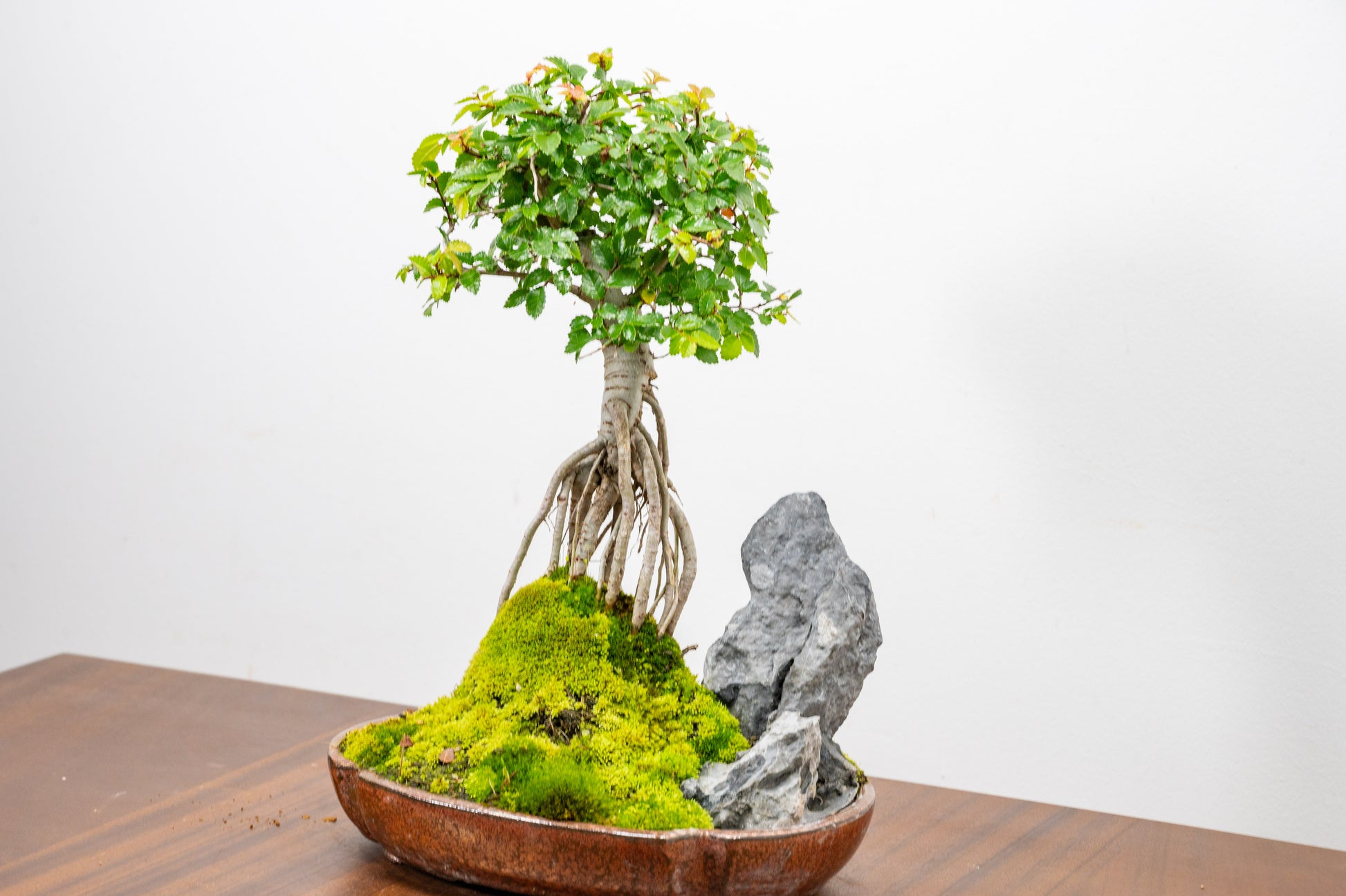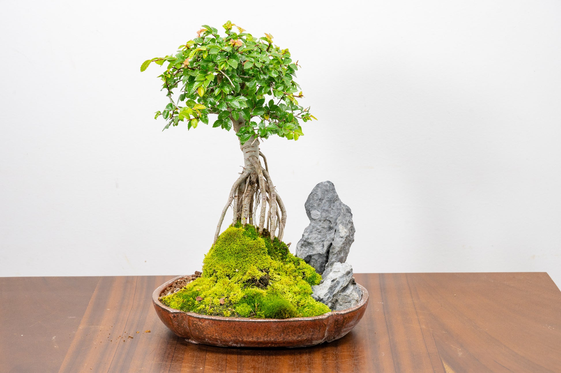 1 - Chinese Elm Exposed Root + Rock Bonsai Planting