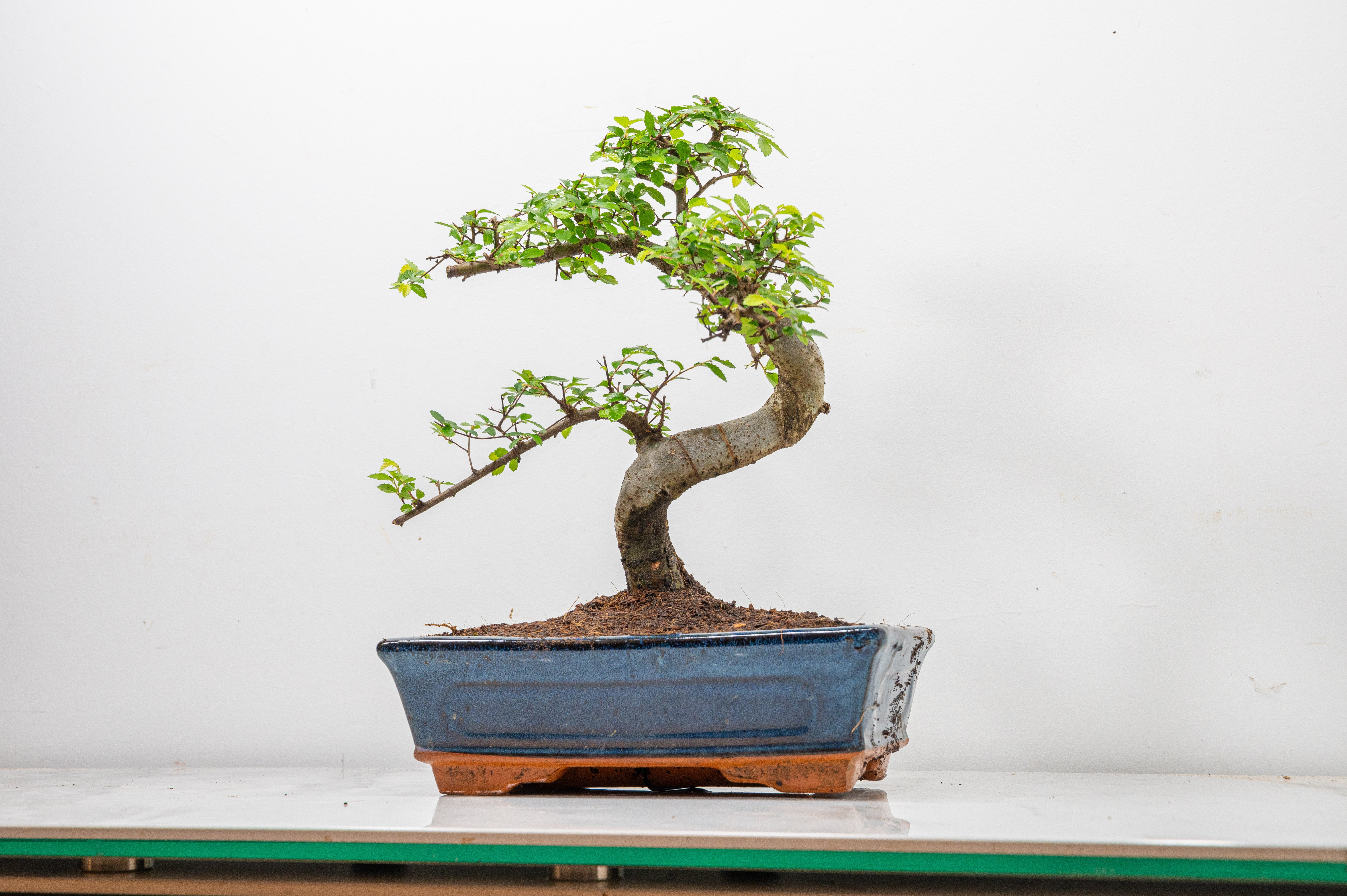 Chinese Elm - Zelkova bonsai tree, scissor/wire offer. Semi evergreen bonsai. Planted in a blue ceramic imported pot.