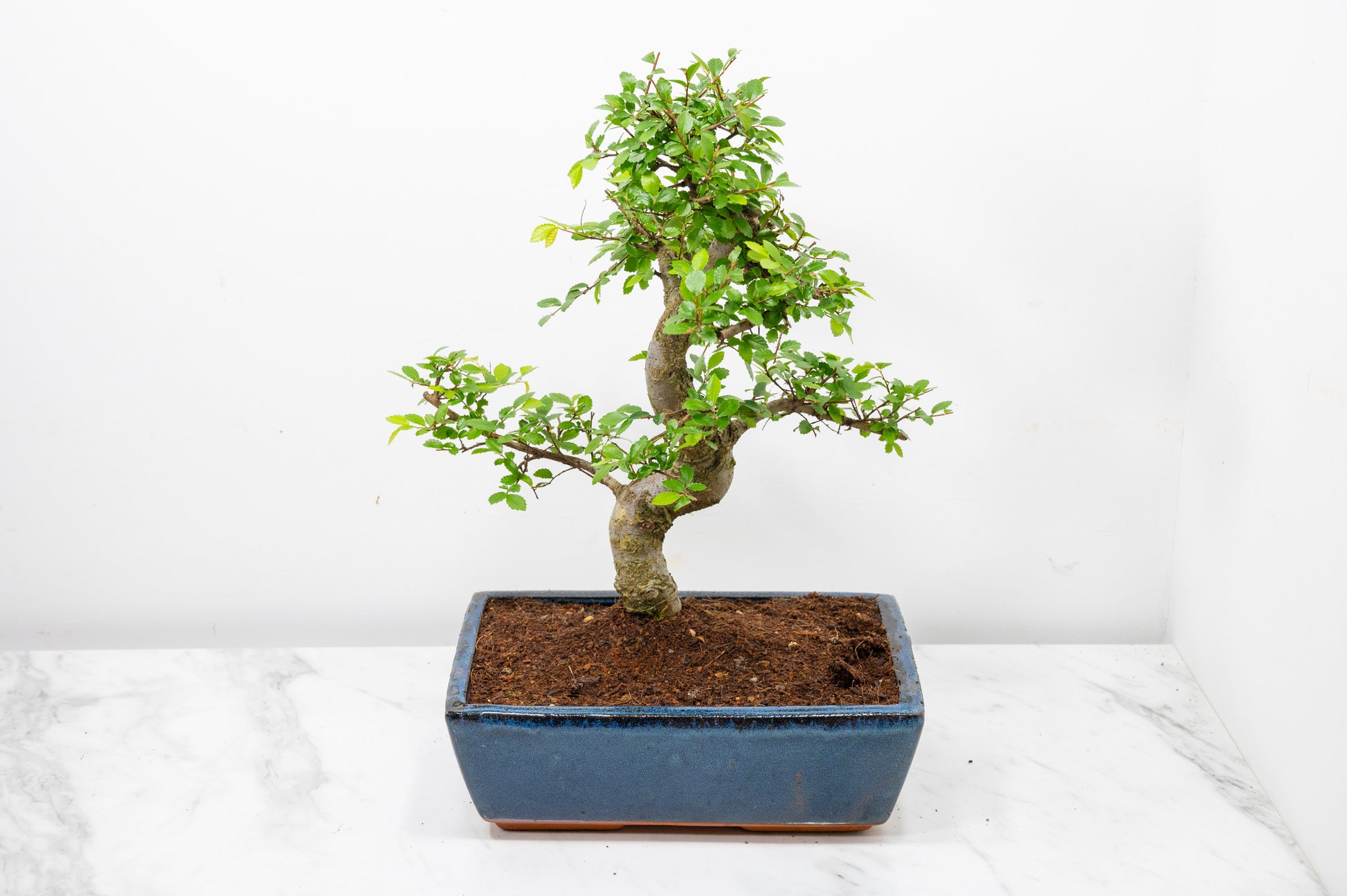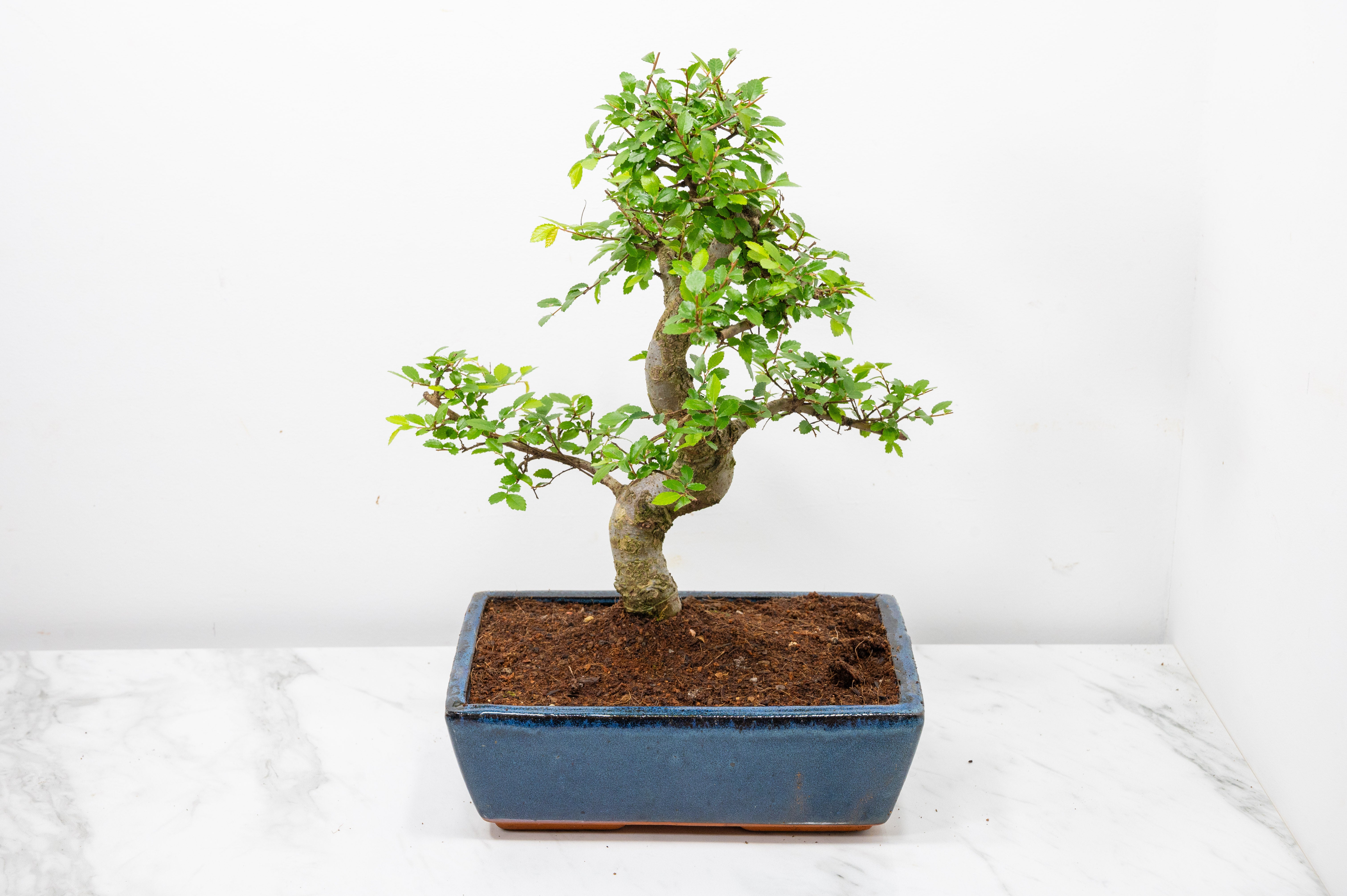 Chinese Elm - Zelkova bonsai tree, scissor/wire offer. Evergreen bonsai. Planted in a blue ceramic imported pot.