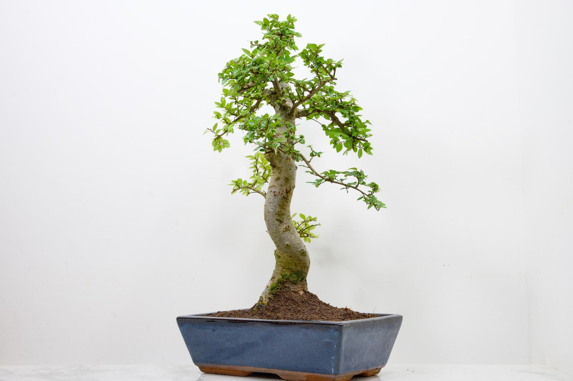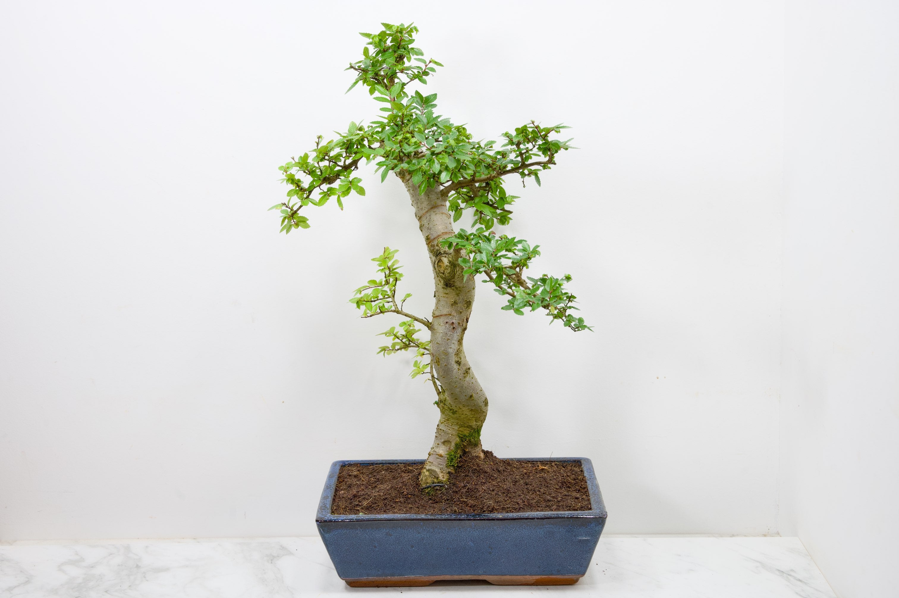 Large Mature Chinese Elm - Zelkova bonsai tree, scissor/wire offer. Semi evergreen bonsai. Planted in a Blue ceramic imported pot.