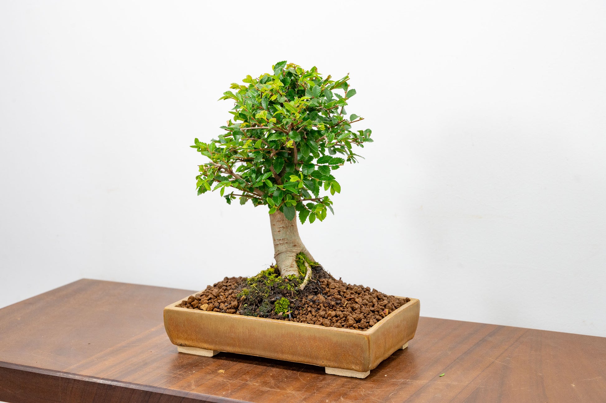 Chinese Elm - Zelkova bonsai tree planted in a Venus Brown ceramic pot
