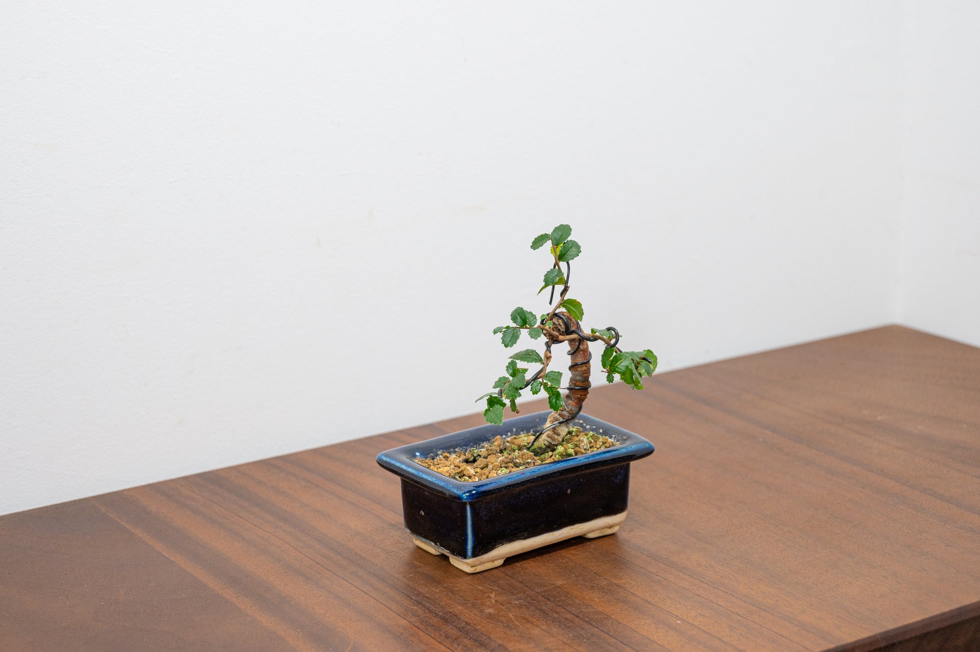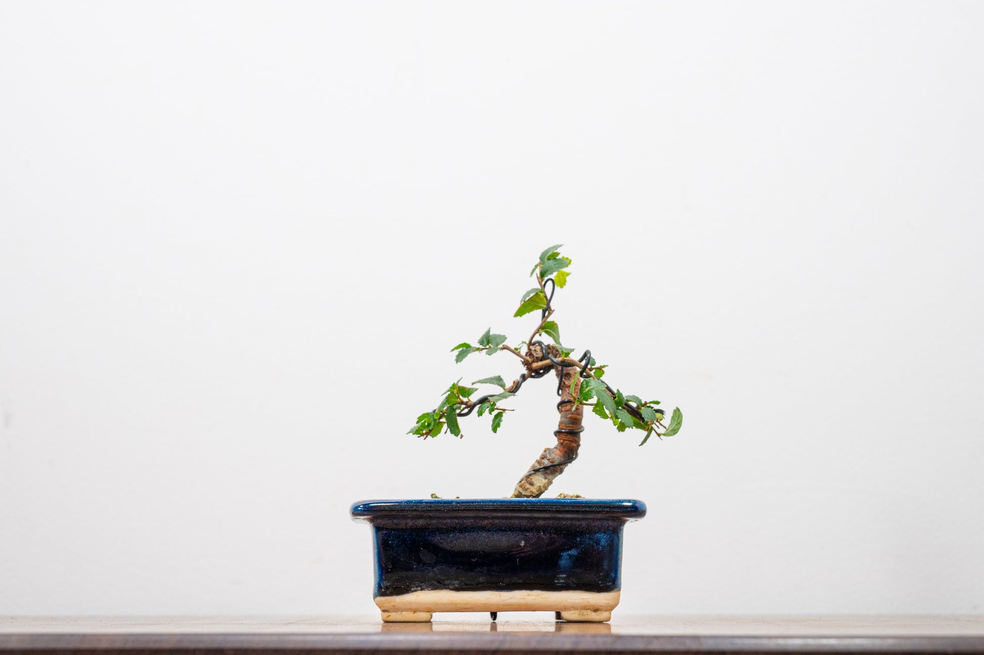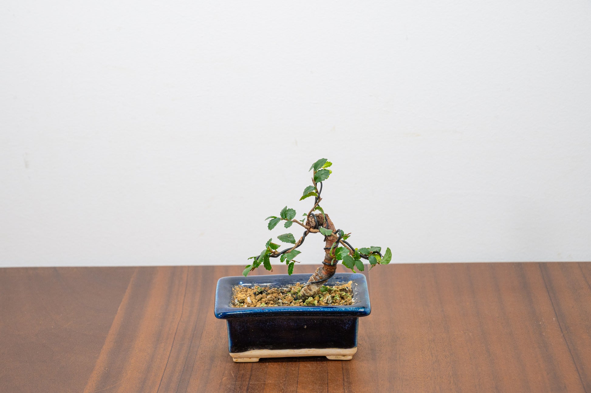 Chinese Elm - Zelkova bonsai tree planted in an Dark Blue Pot ceramic pot