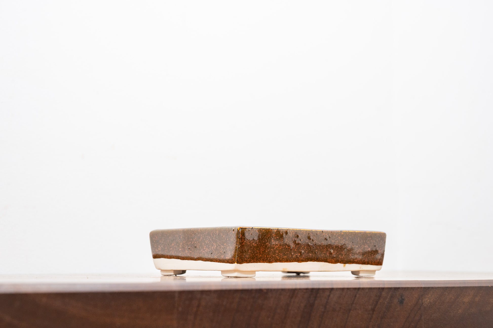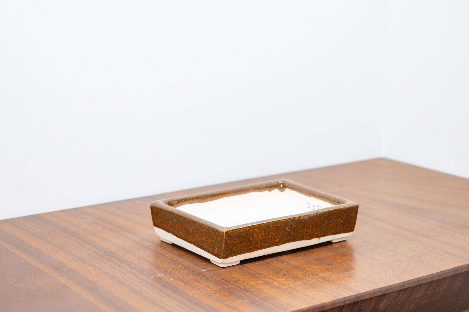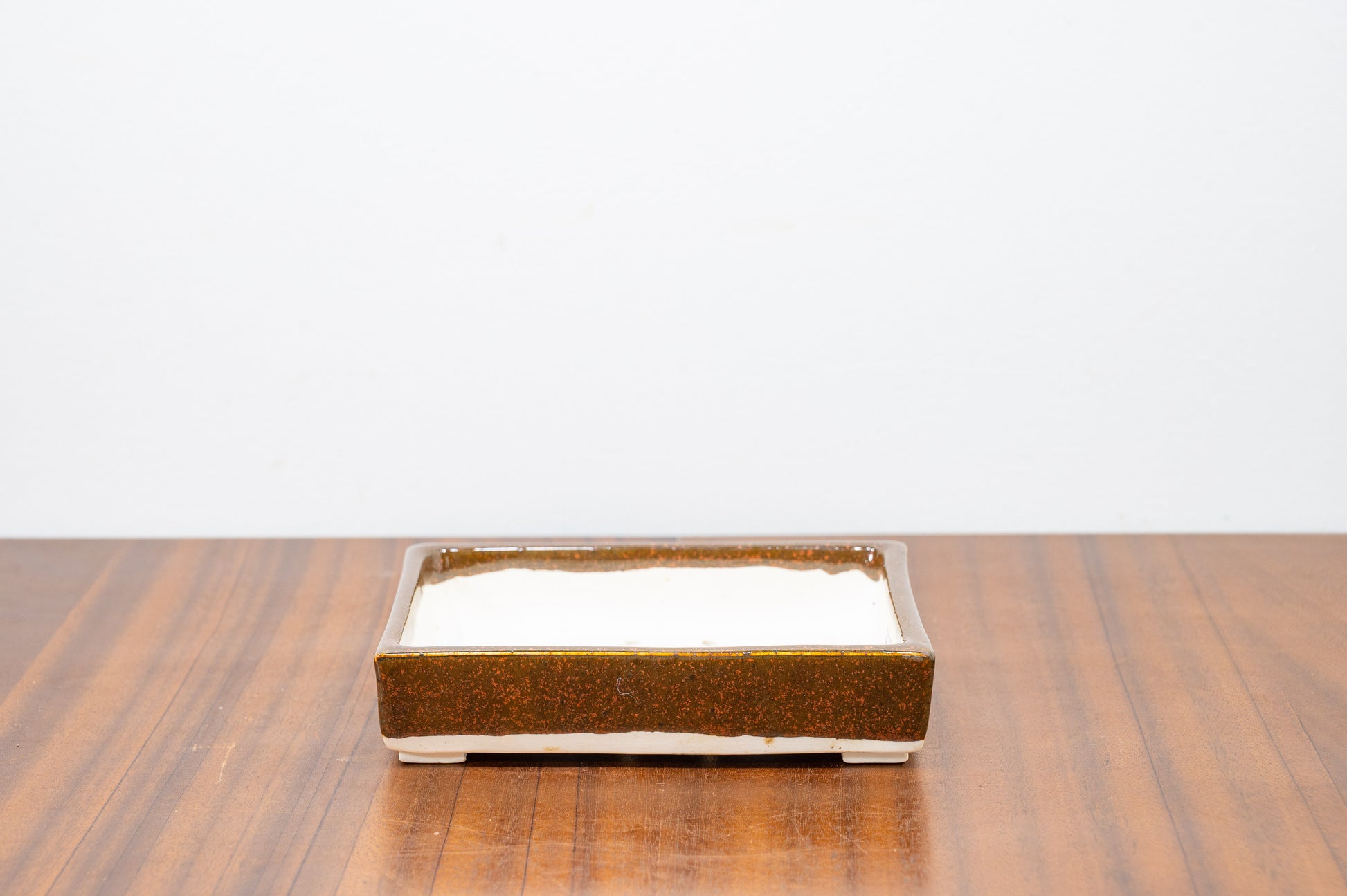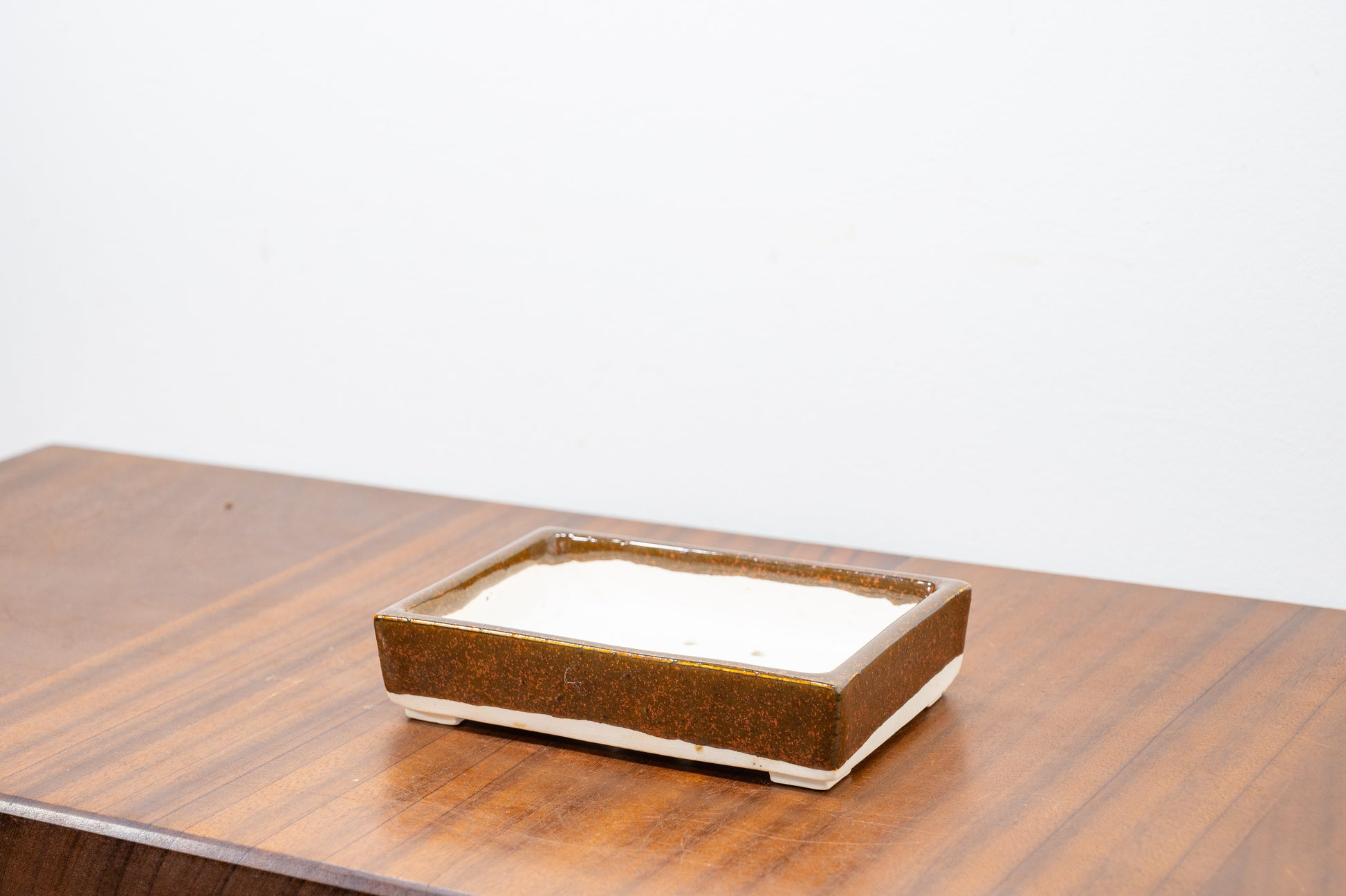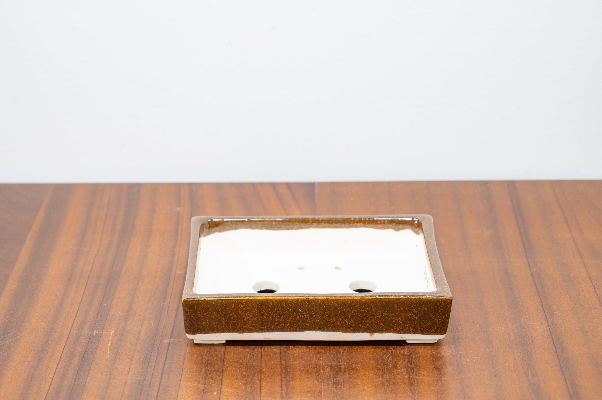 Brown / Red Speckle Rectangular White Stoneware Bonsai Pot 14cm