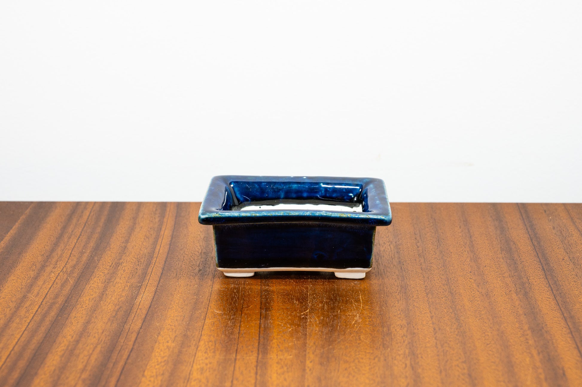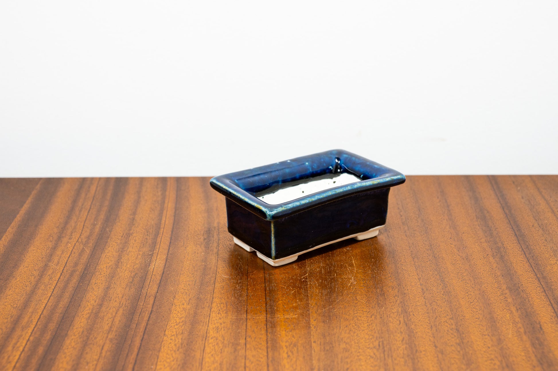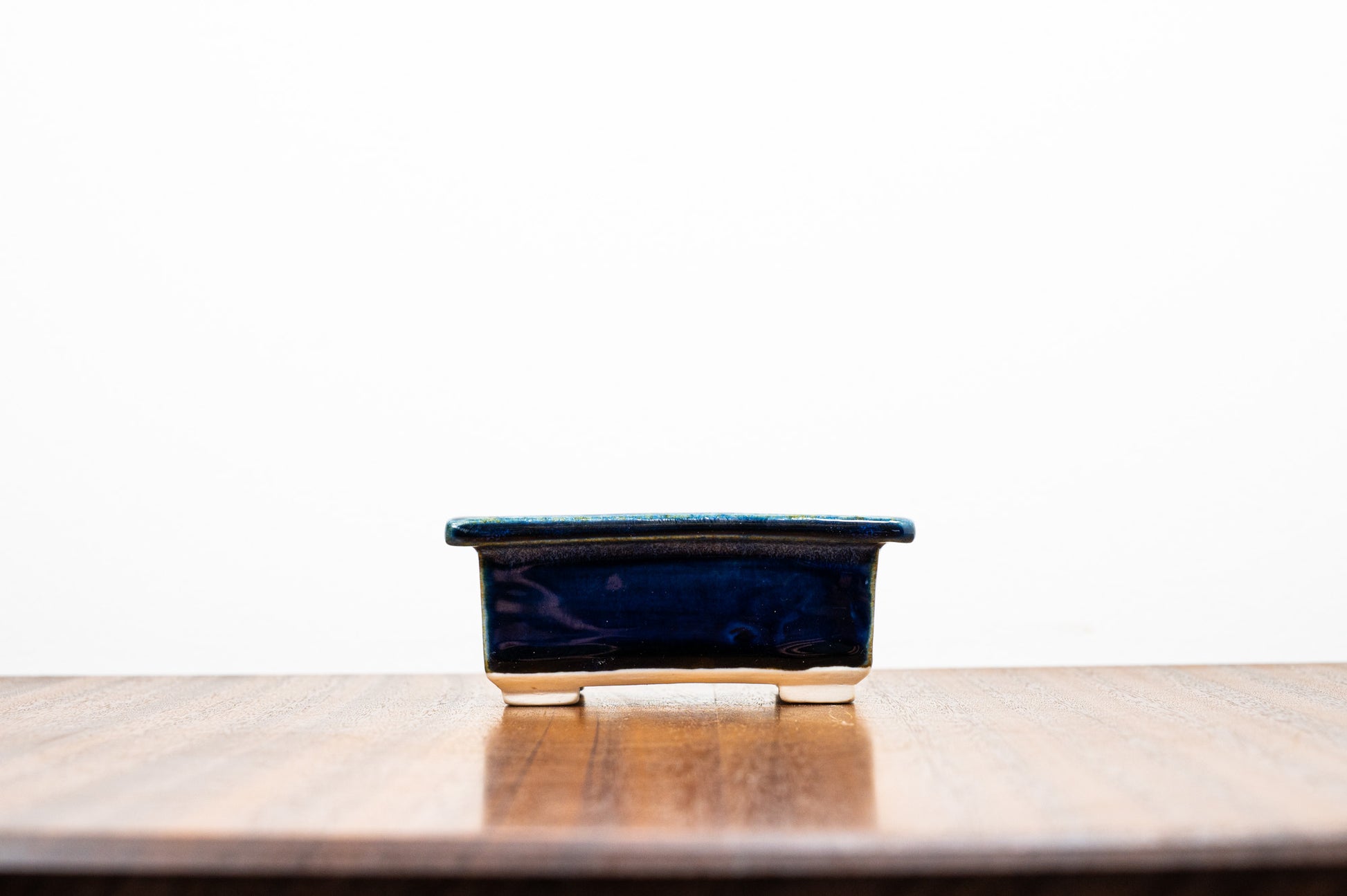 Dark Blue Opal Rectangular White Stoneware Bonsai Pot 10cm