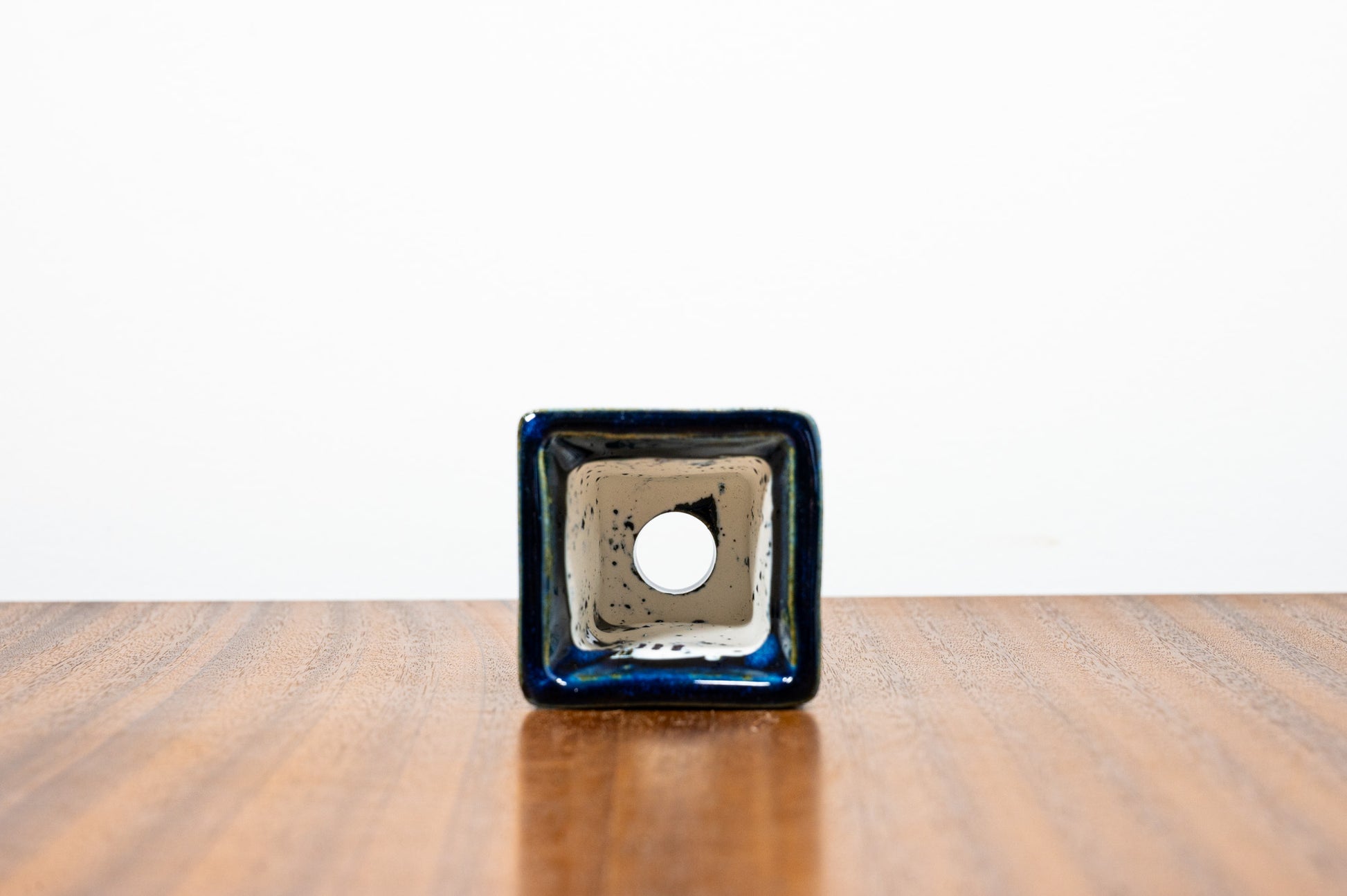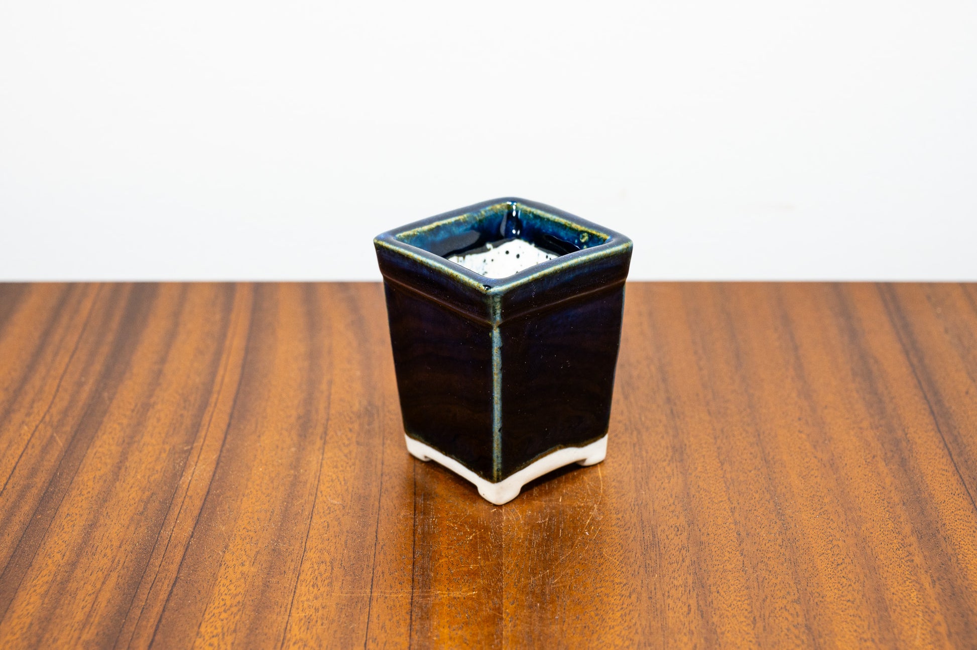 Dark Blue Opal White Stoneware Cascade Bonsai Pot 5cm