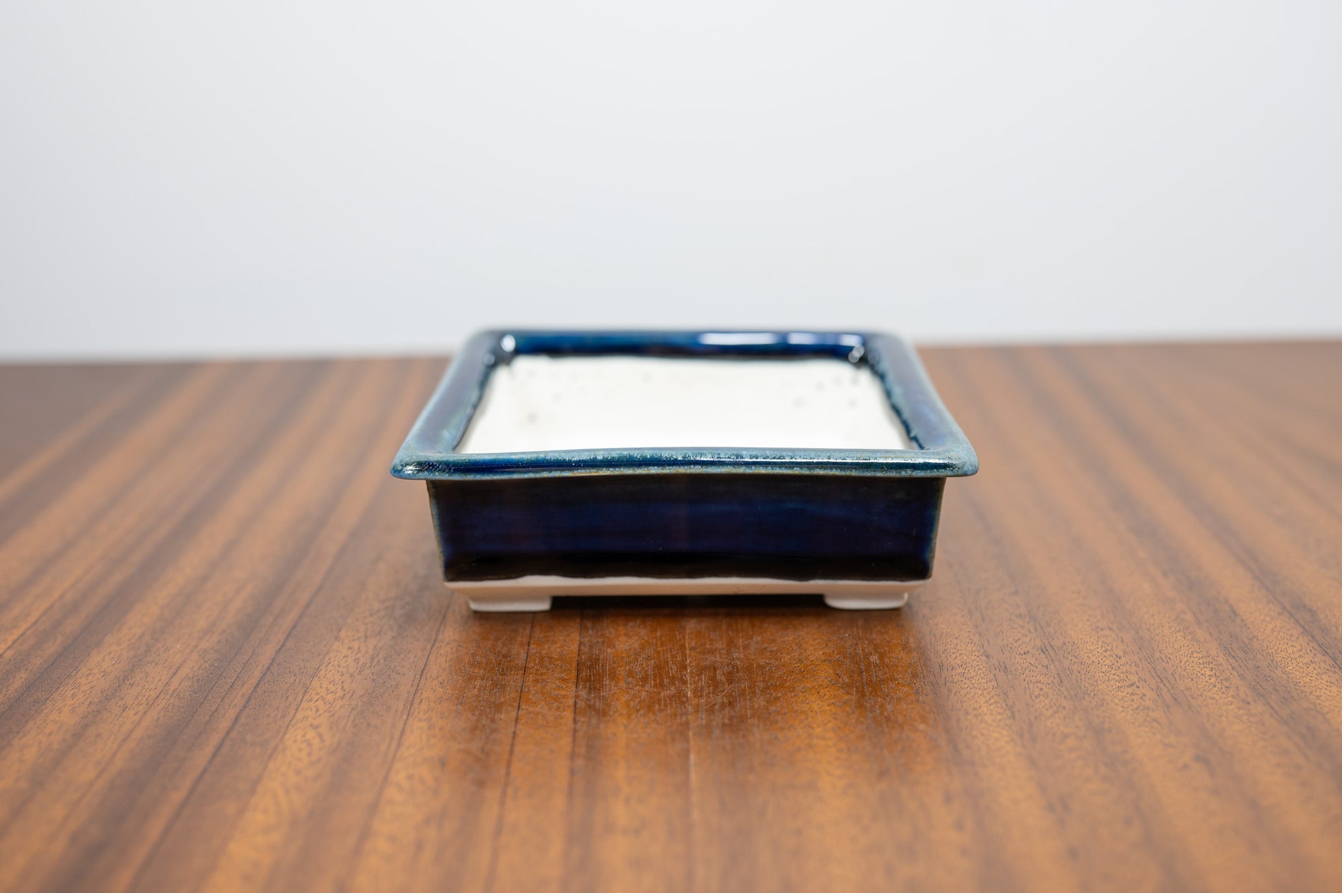 Dark Blue Opal Rectangular White Stoneware Bonsai Pot 11cm