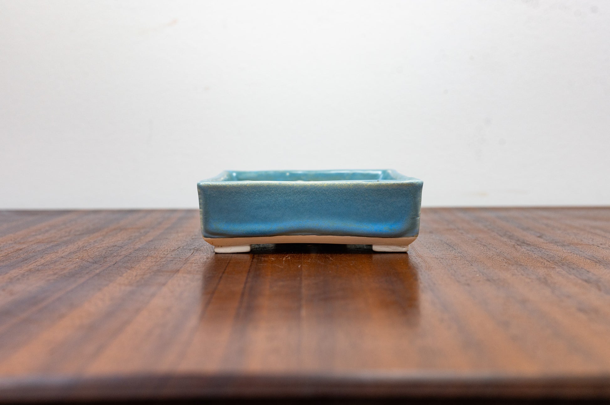 Symphony Blue Rectangular White Stoneware Bonsai Pot 10cm