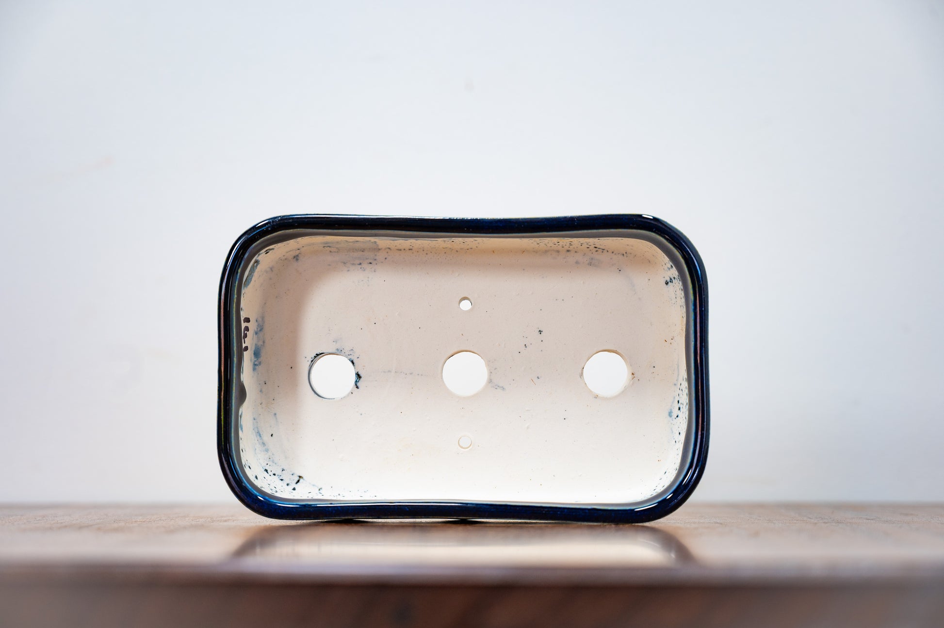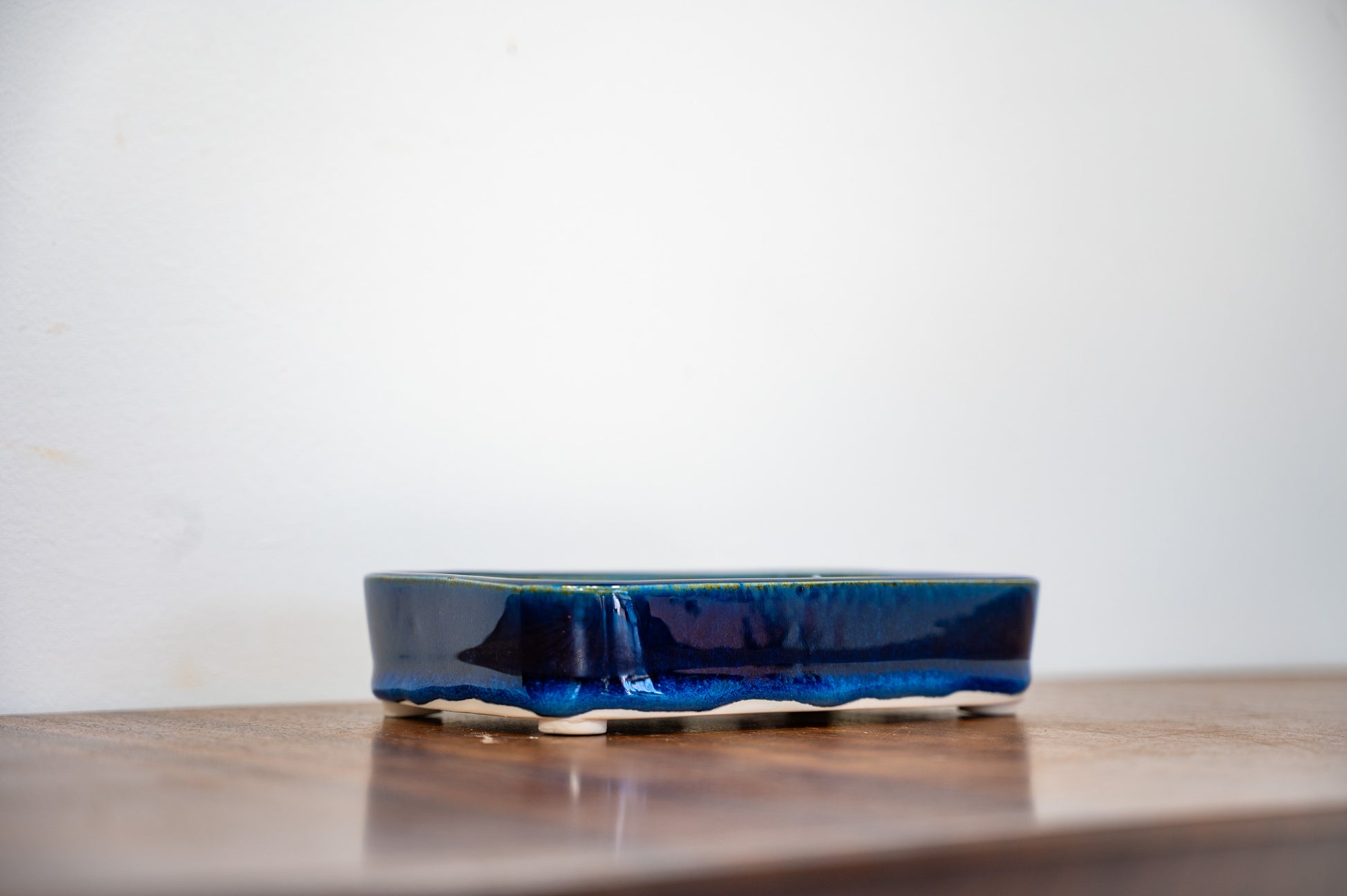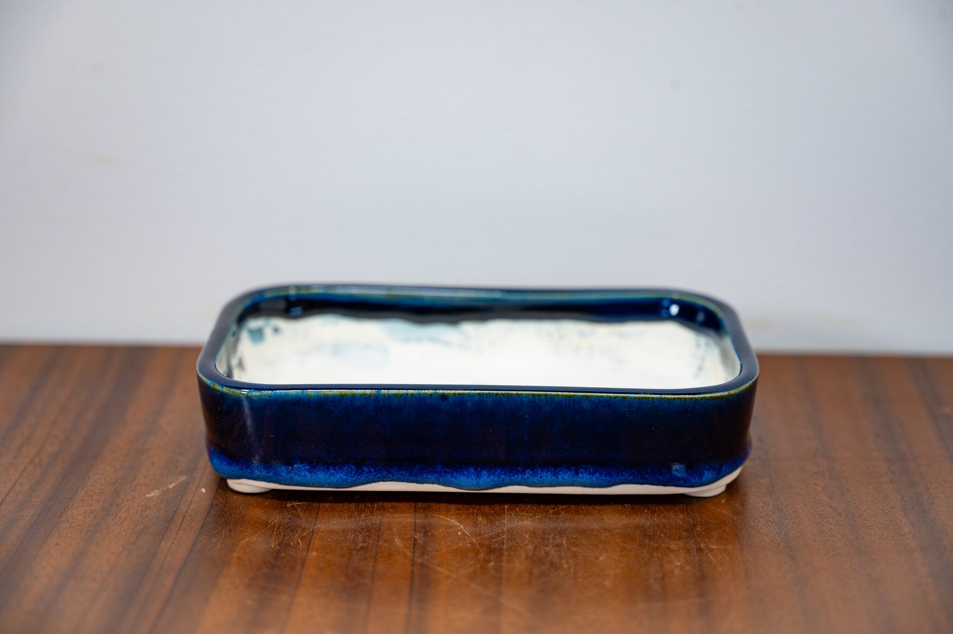 Dark Blue Opal Curved Rectangular White Stoneware Bonsai Pot 15cm