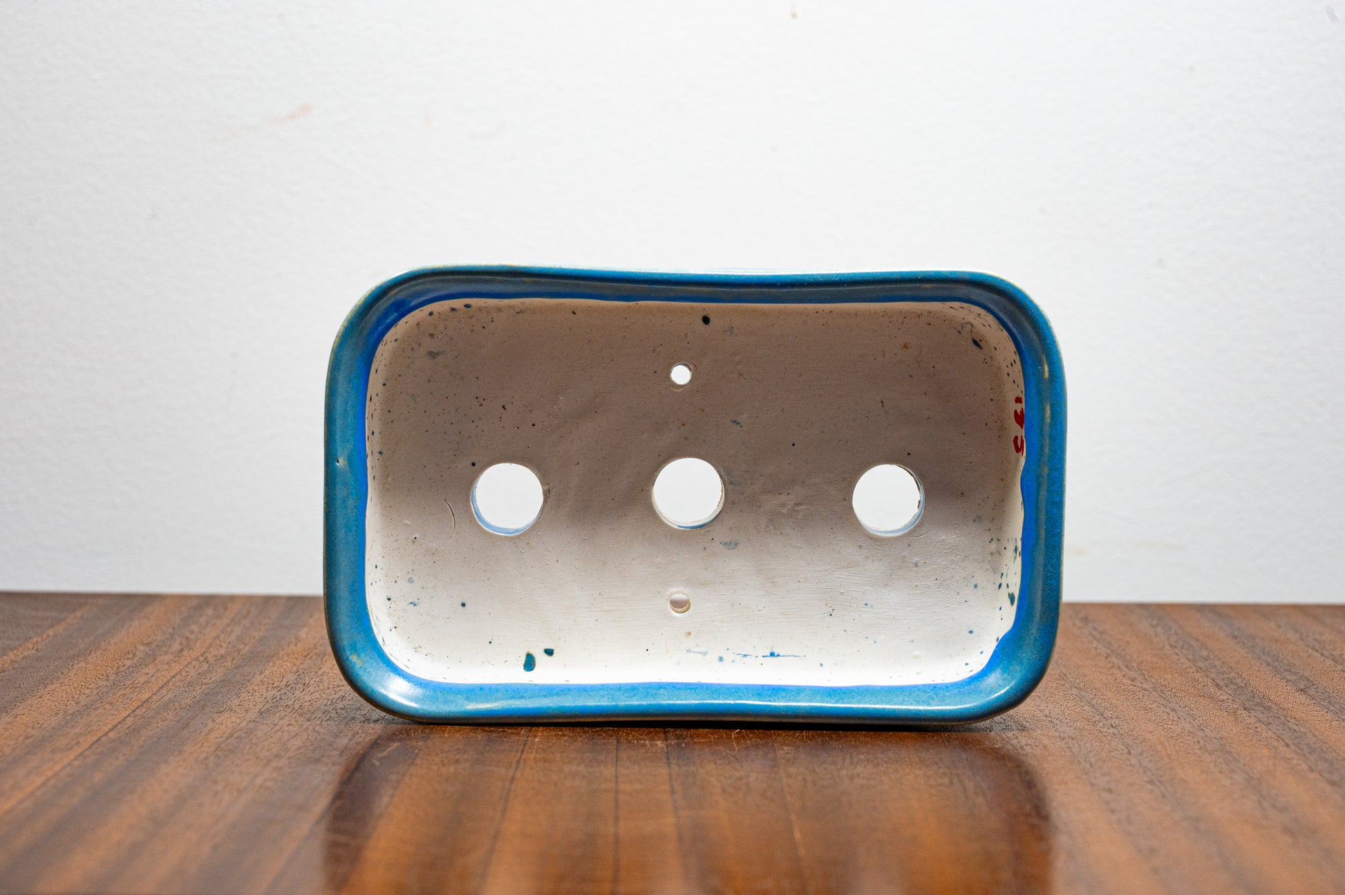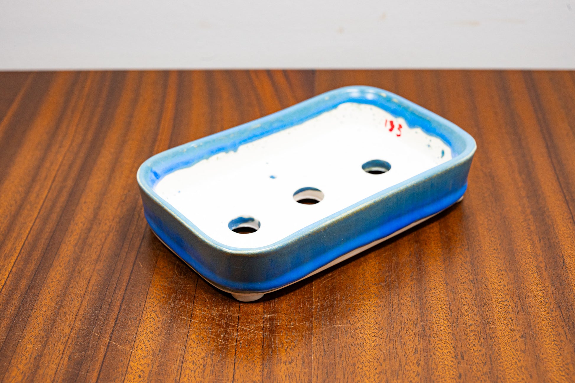 Symphony Blue Curved Rectangular White Stoneware Bonsai Pot 15cm