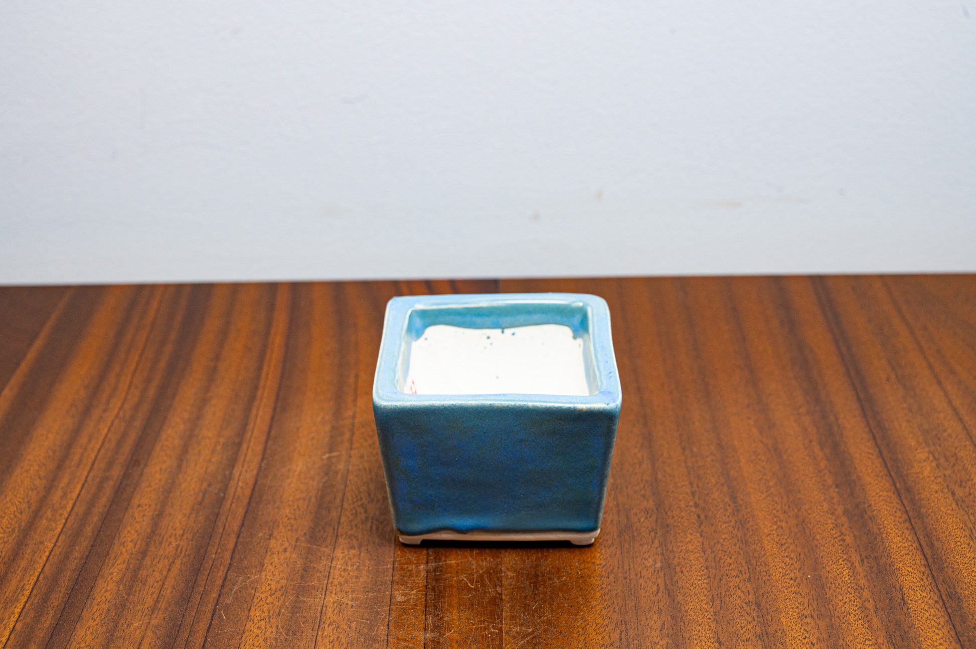 Symphony Blue White Stoneware Cascade Bonsai Cube Pot 7cm
