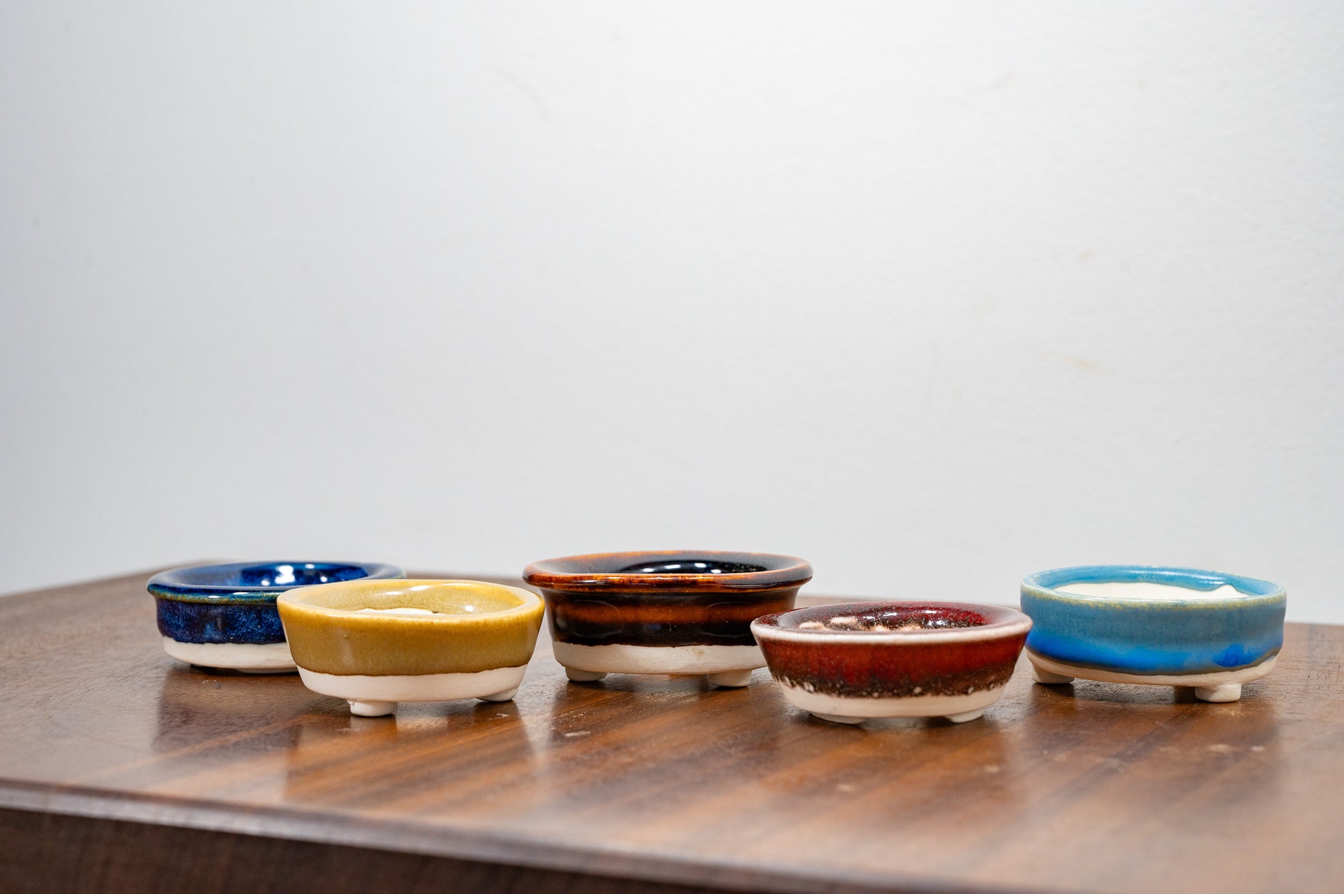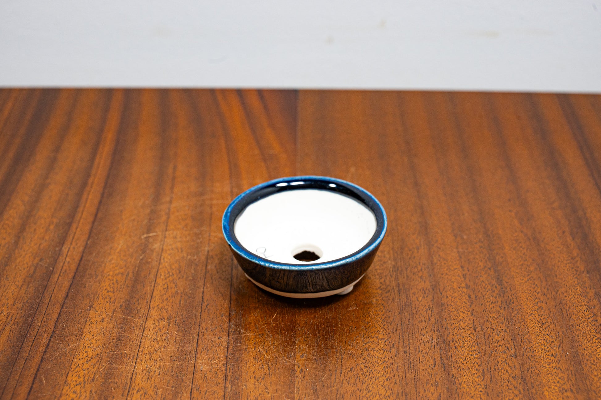 Dark Blue Opal - White Stoneware Round MAME Bonsai Pot 5.5cm