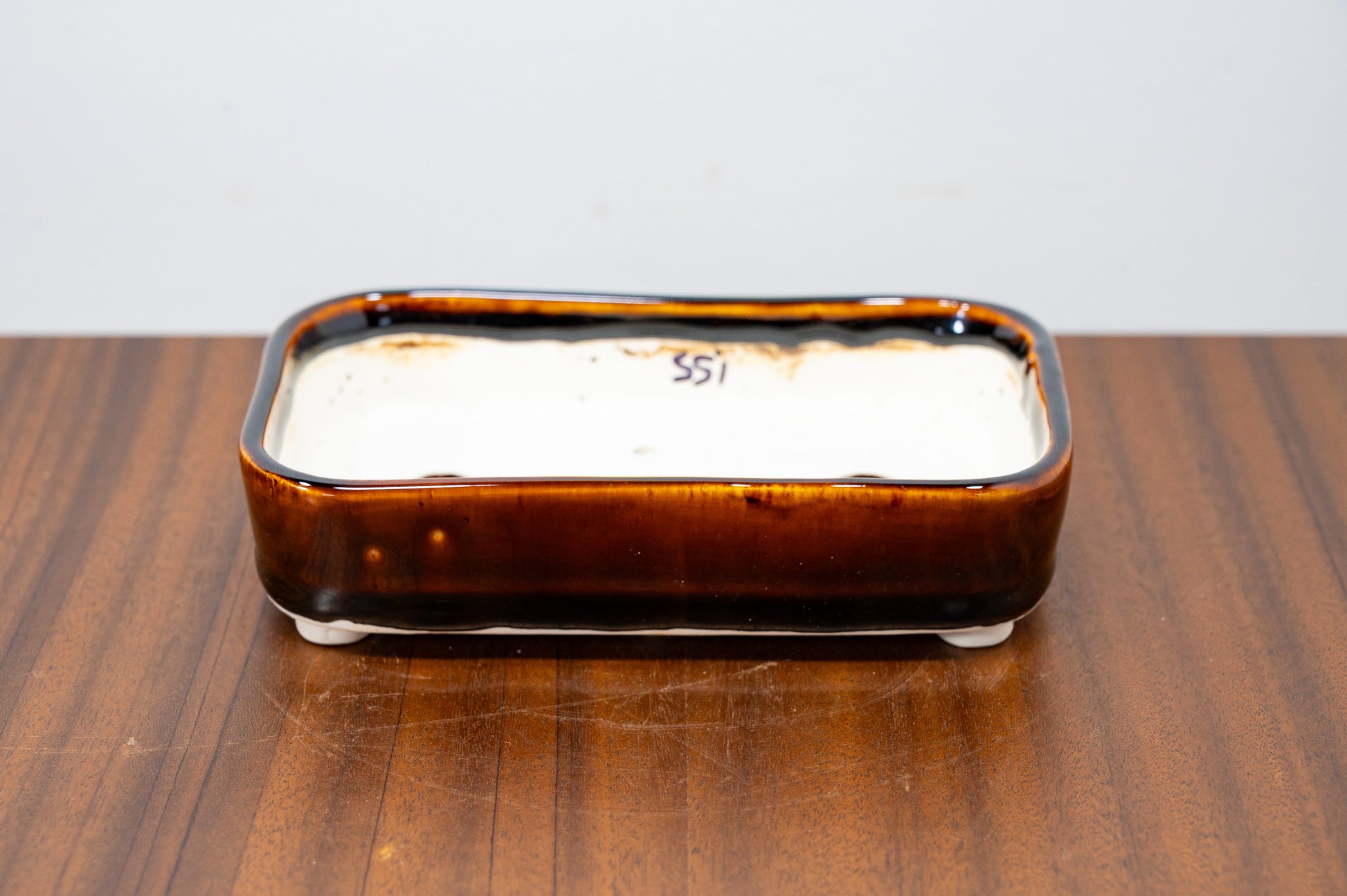 Dark Brown Curved Rectangular White Stoneware Bonsai Pot 15cm