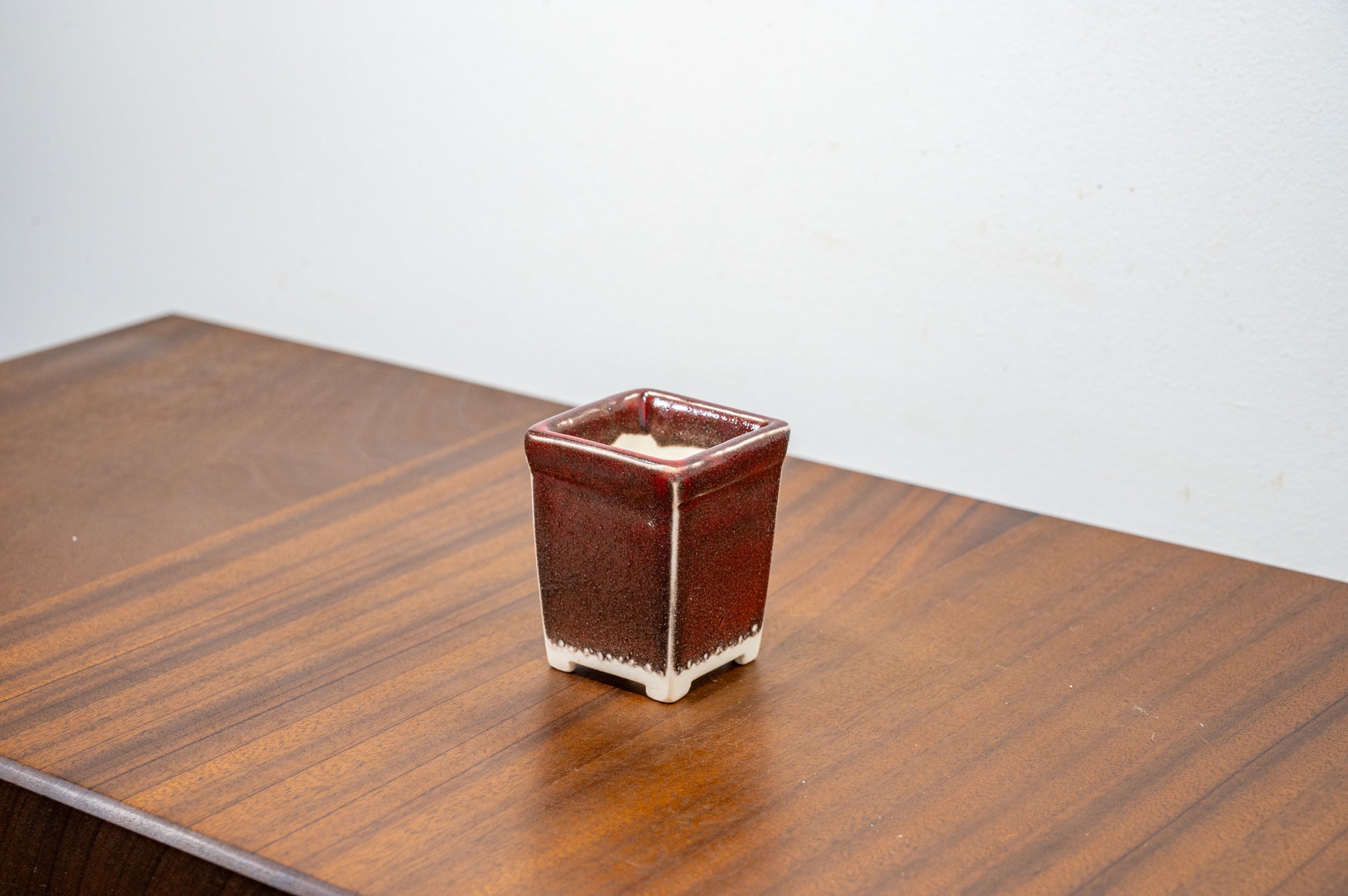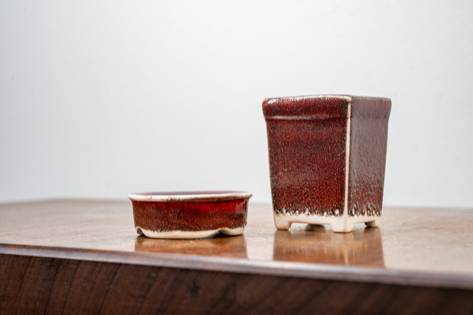 Solar Red - White Stoneware Cascade Bonsai Pot 5cm