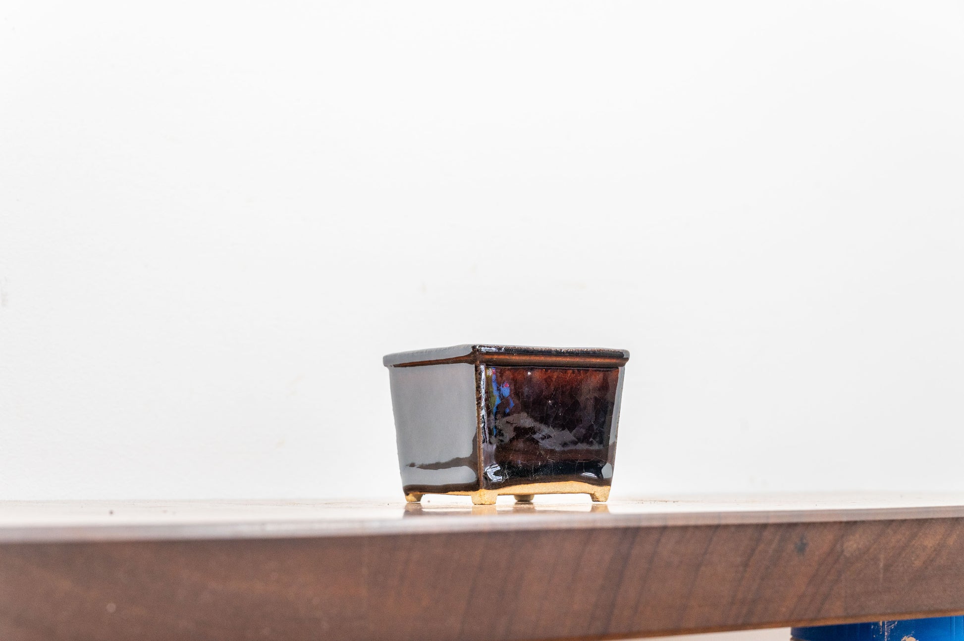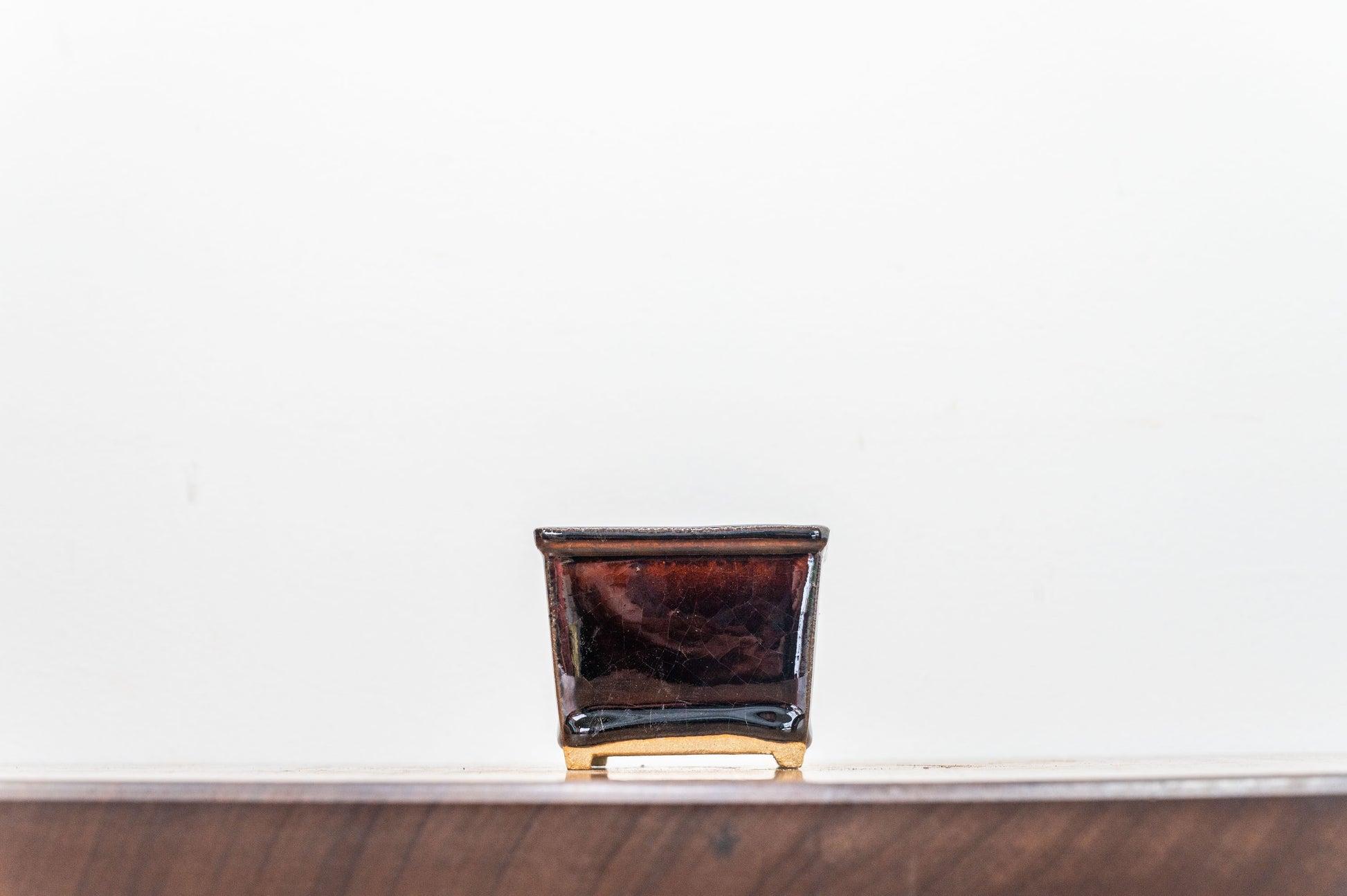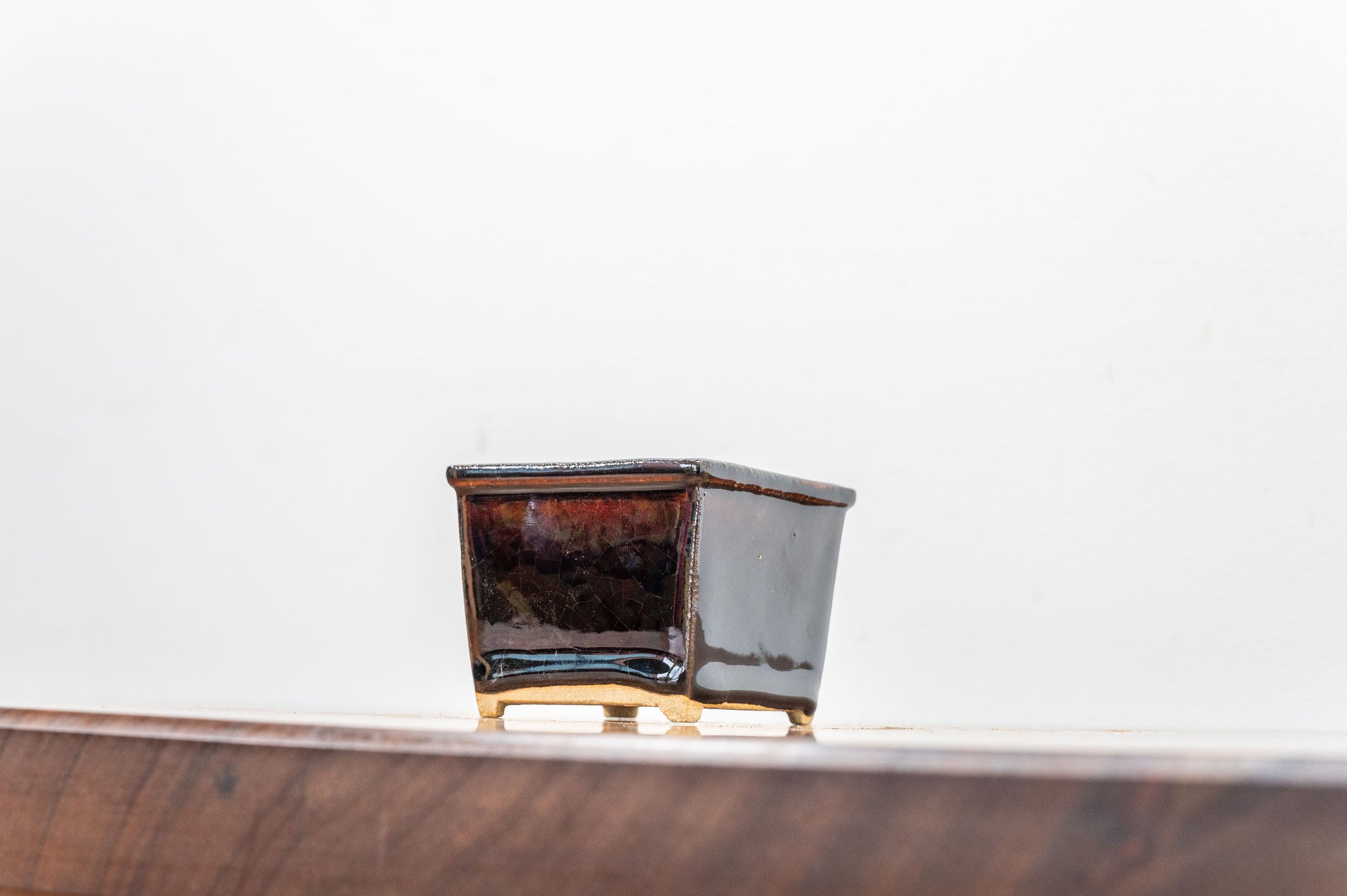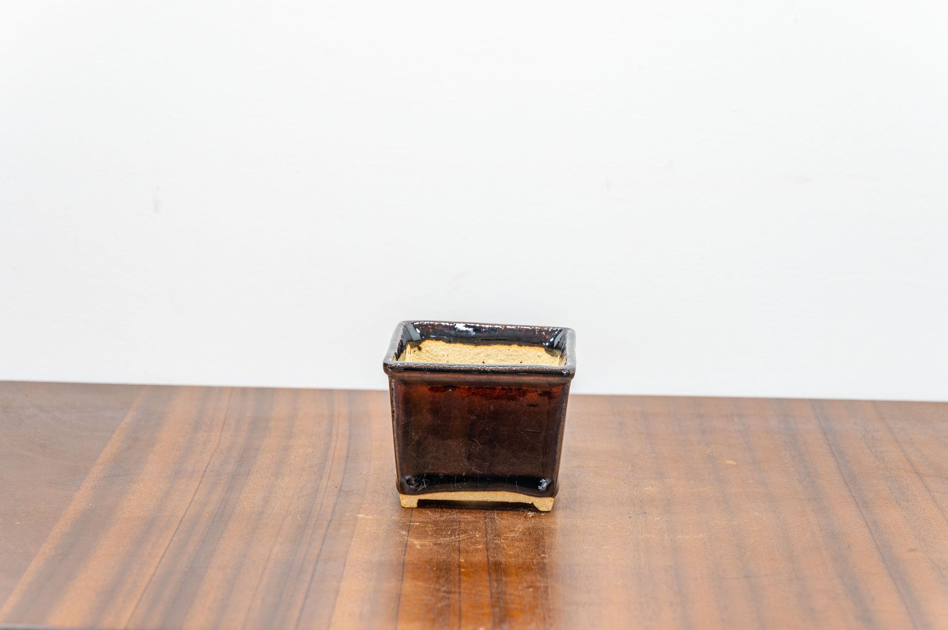 Dark Brown Cascade Cube Ceramic Bonsai Pot 7cm
