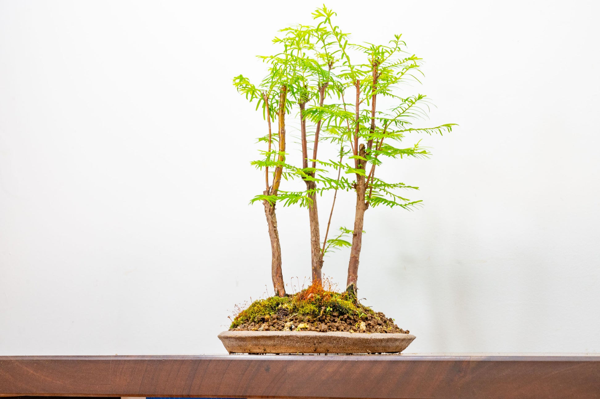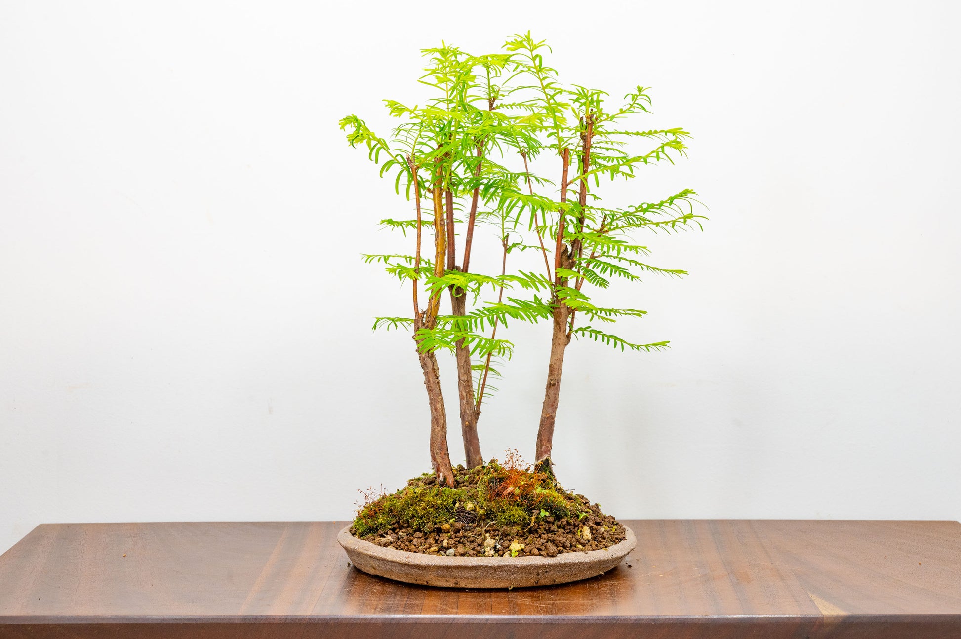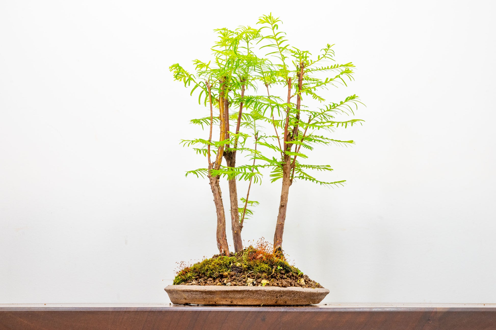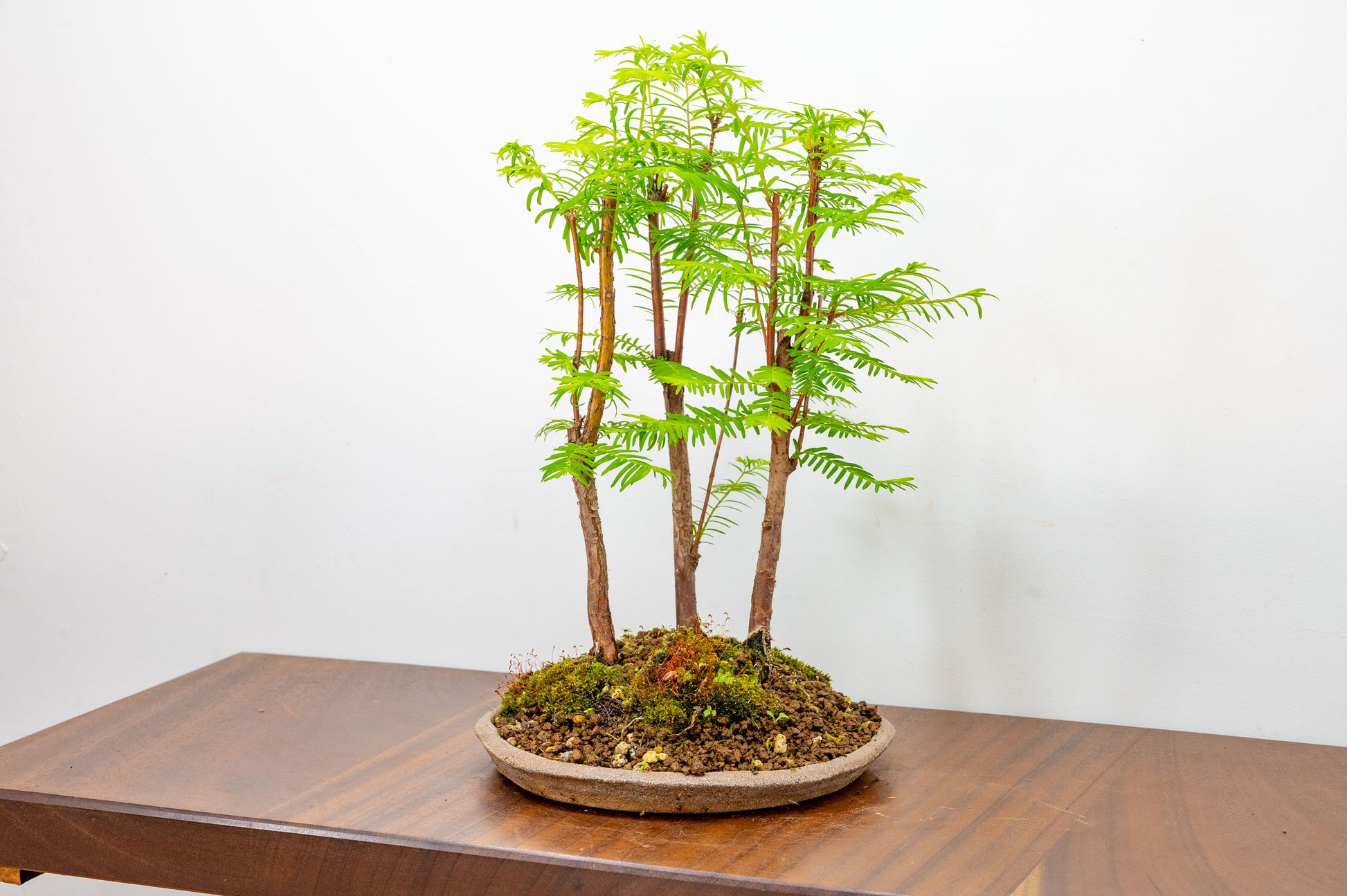 Dawn Redwood bonsai 3 tree group planting, metasequoia glyptostroboides