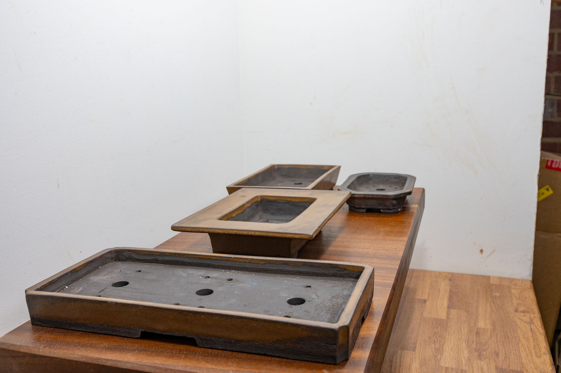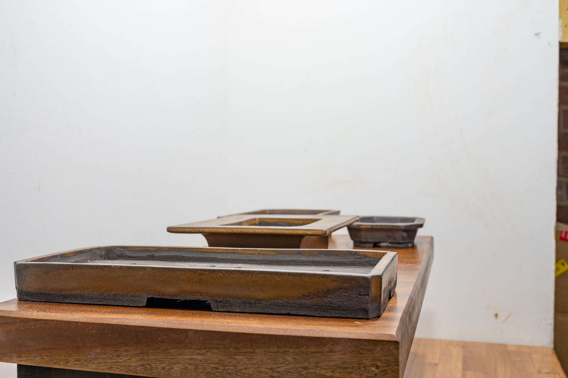 Our handcrafted ceramic pots are all designed and created by us at Zero Bonsai. Each pot having slightly different detail, size, features and colour variations. Created from wet clay, using techniques inspired by pot makers in Japan, carved out of wet clay or slab built. All are high fired and glazed in a variety of colours. Perfect for that special tree or excellent as a gift.
