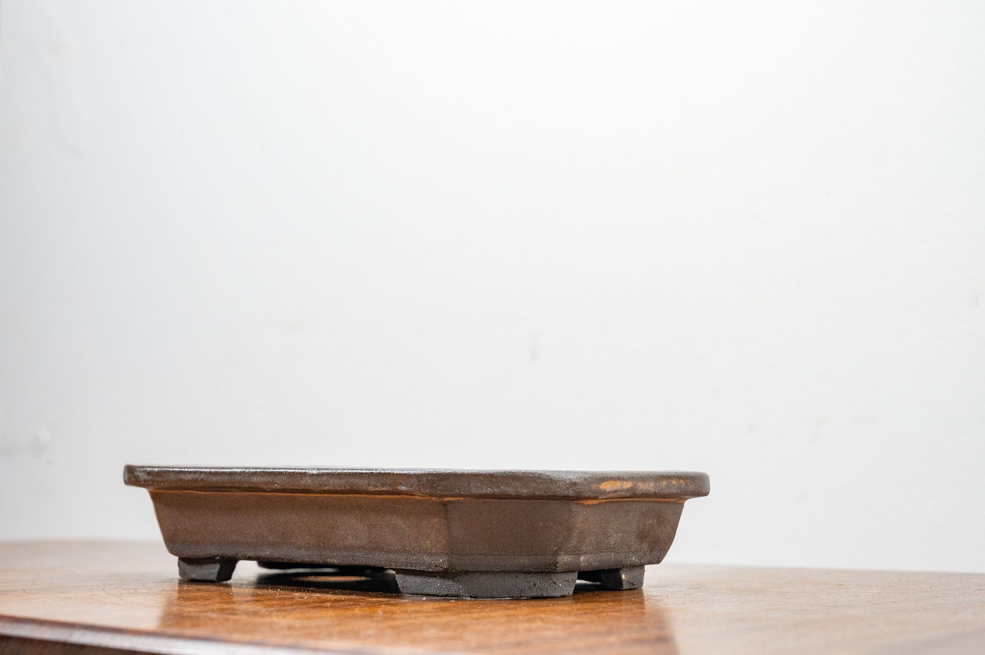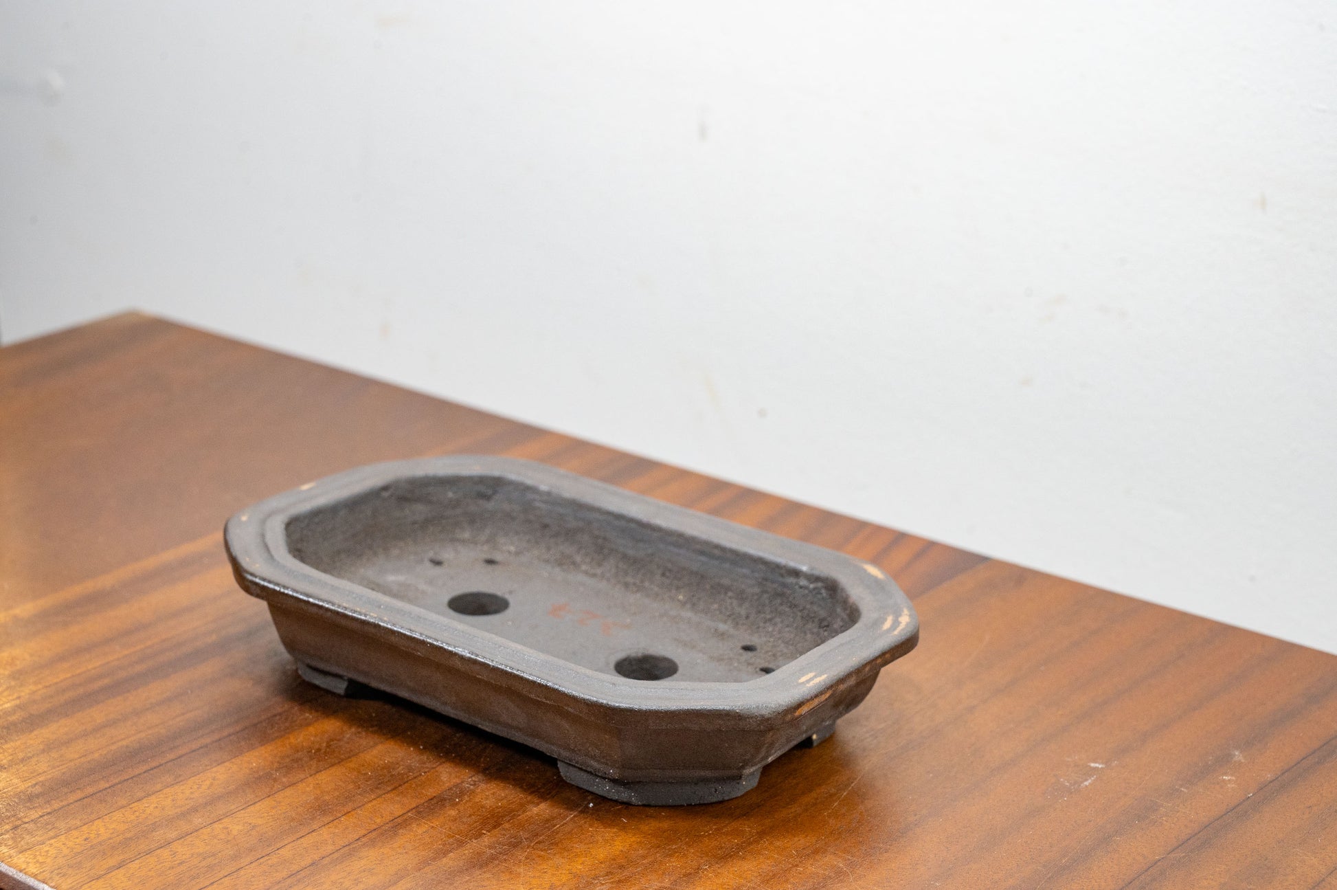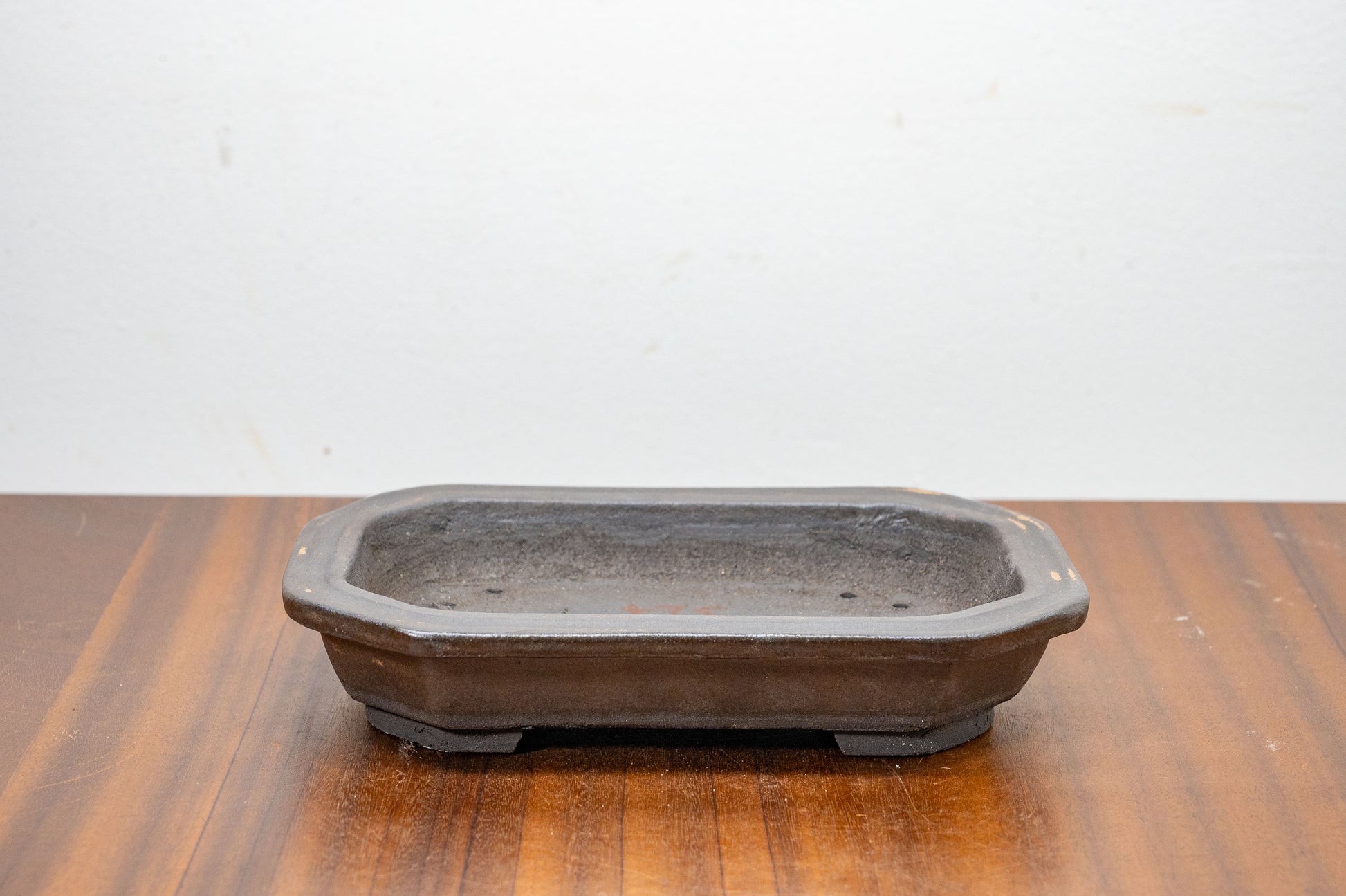 Black - Venus Brown Rim - Rectangular Ceramic Bonsai Pot 18cm