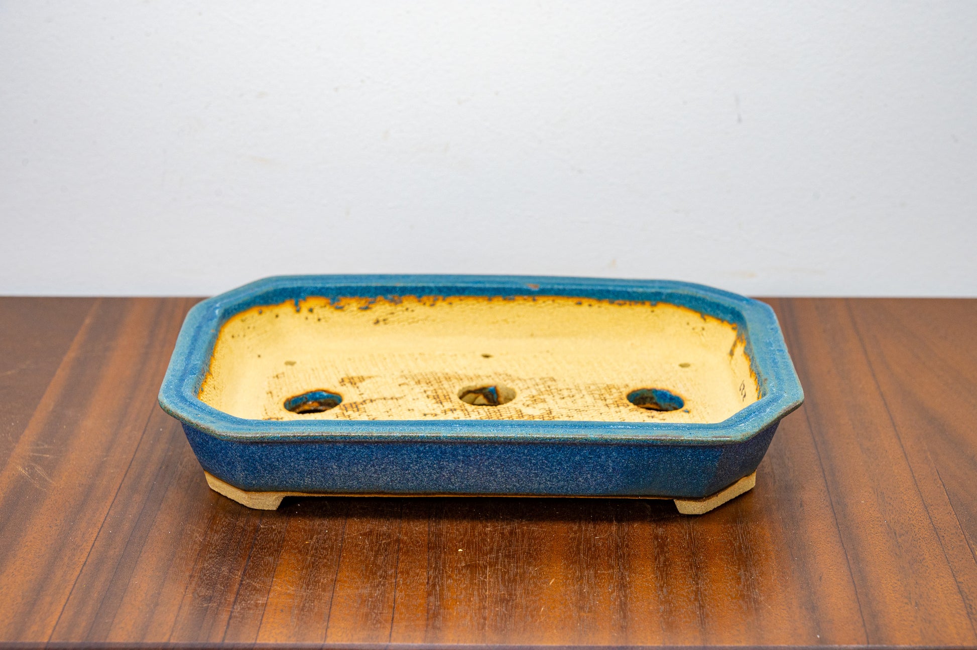 Matt Blue Cut Cornered Rectangular Ceramic Bonsai Dish 23cm