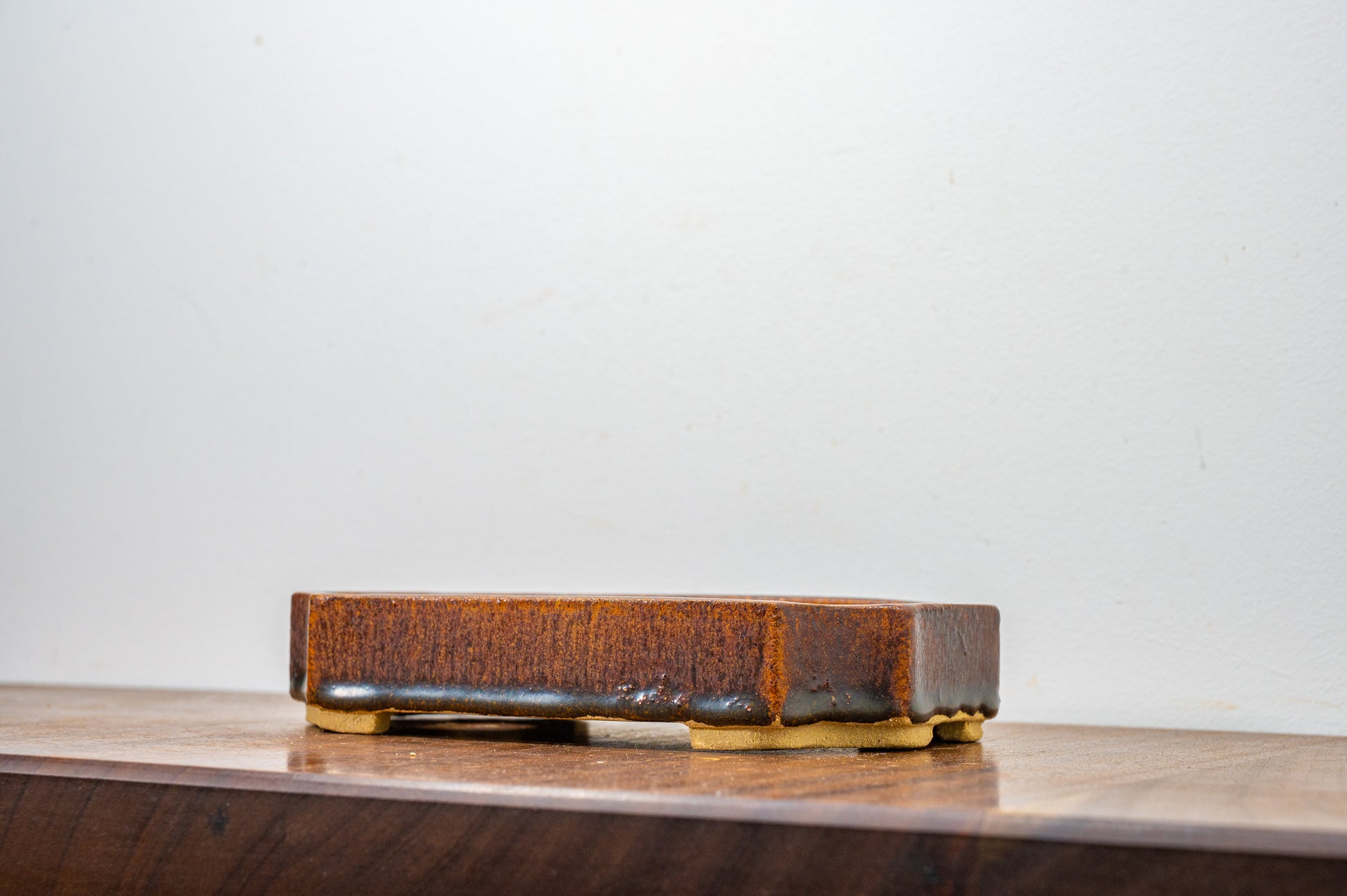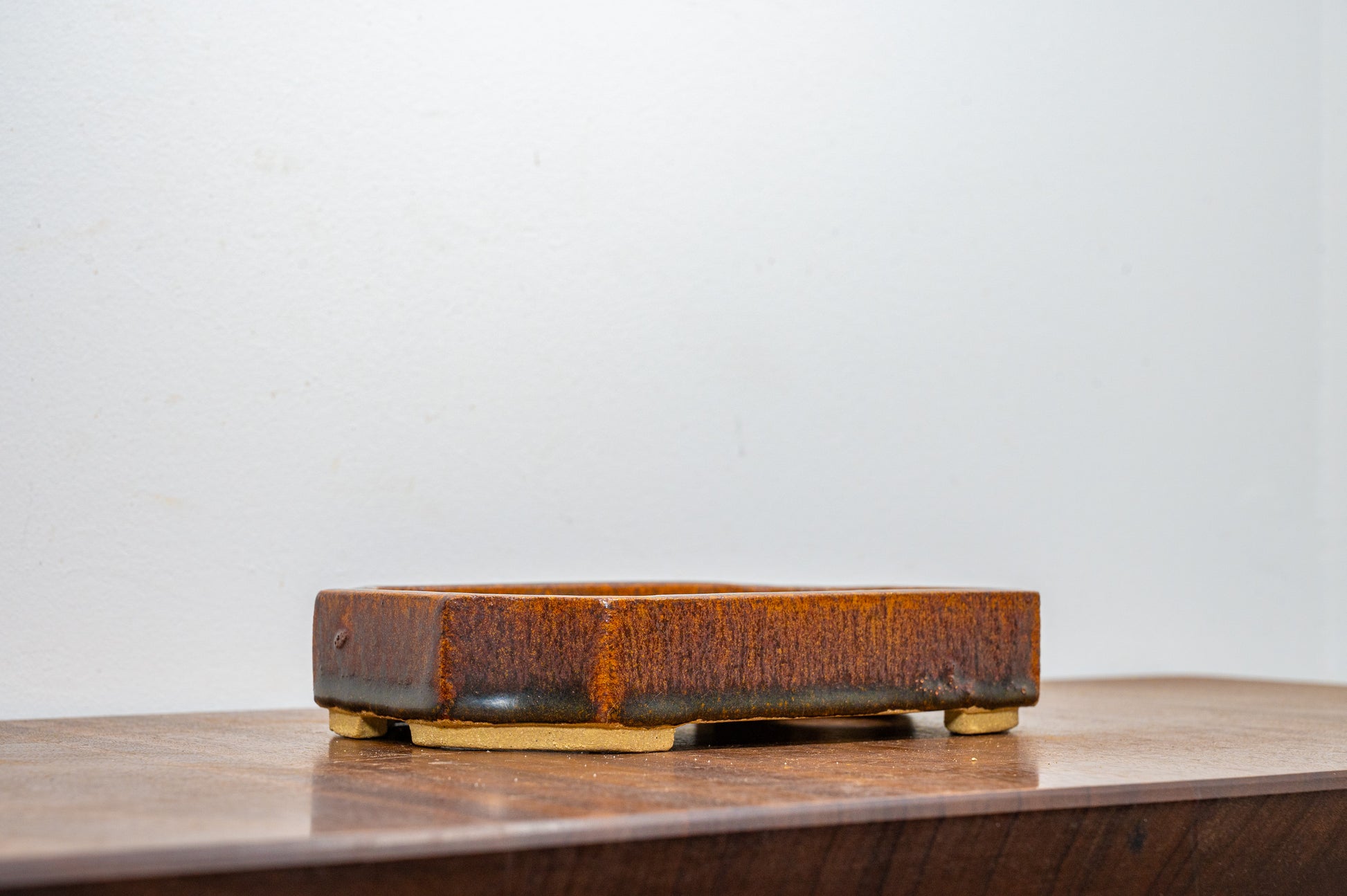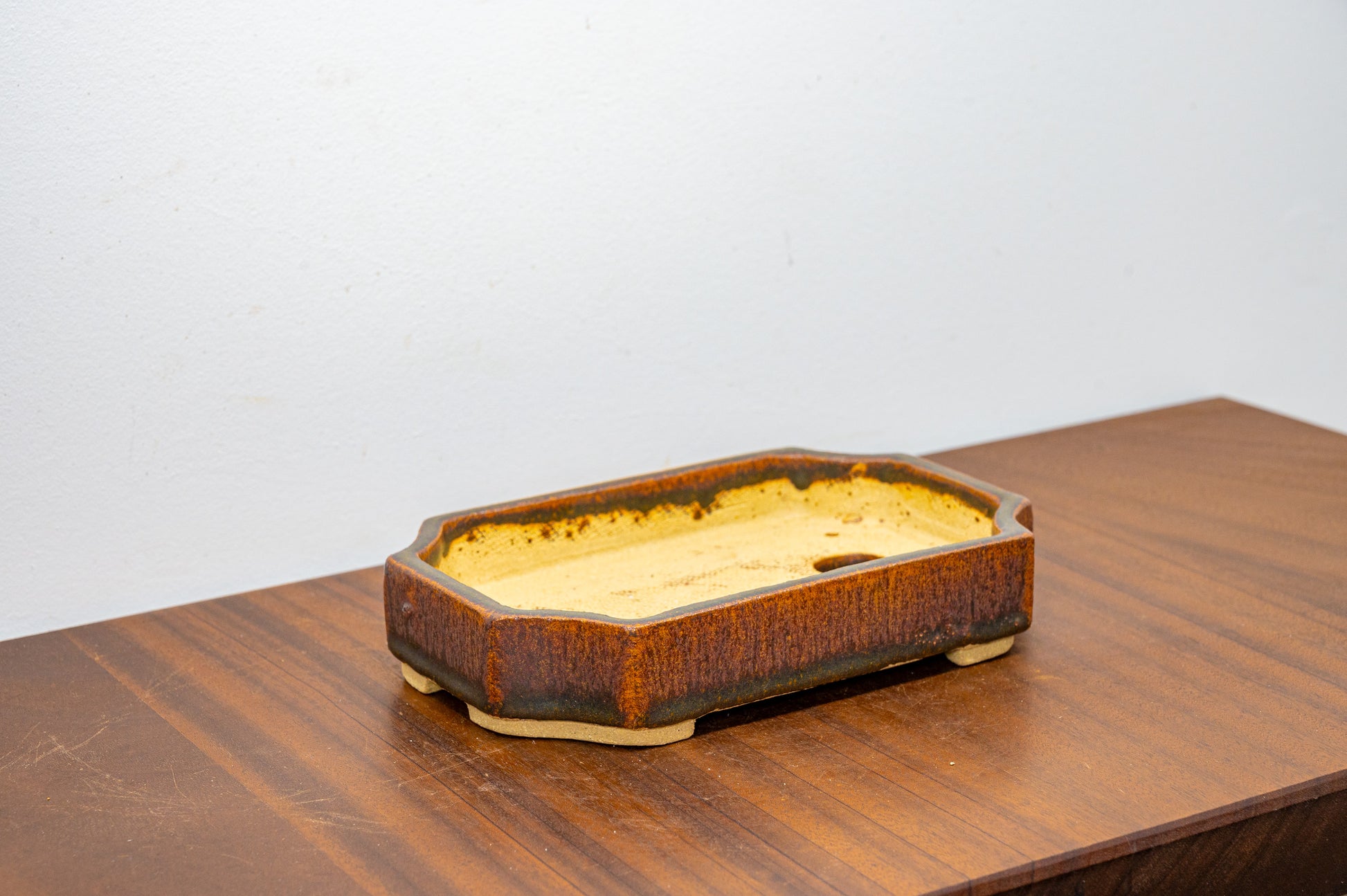 Ember Brown Cut Cornered Rectangular Ceramic Bonsai Dish 19cm