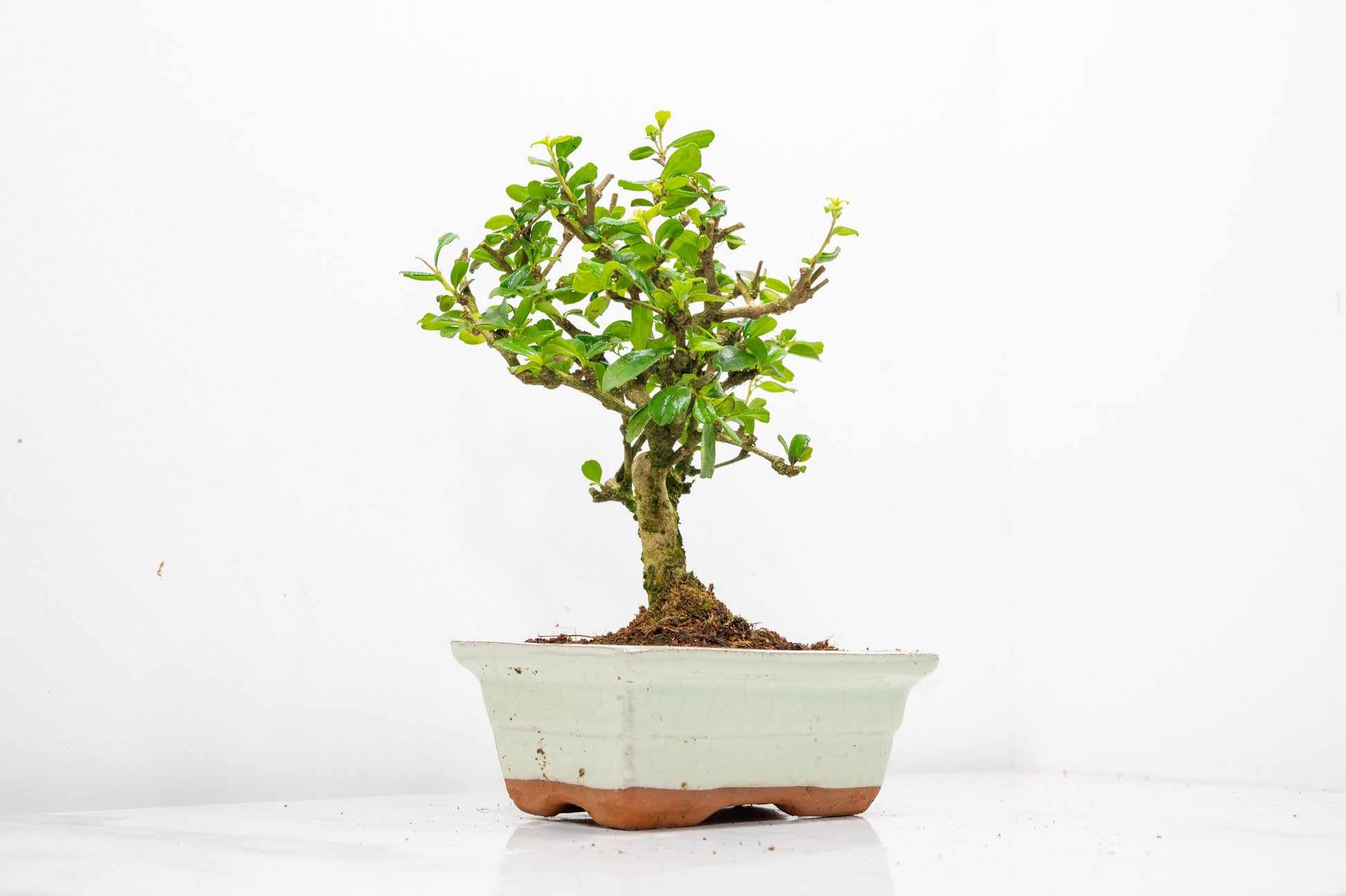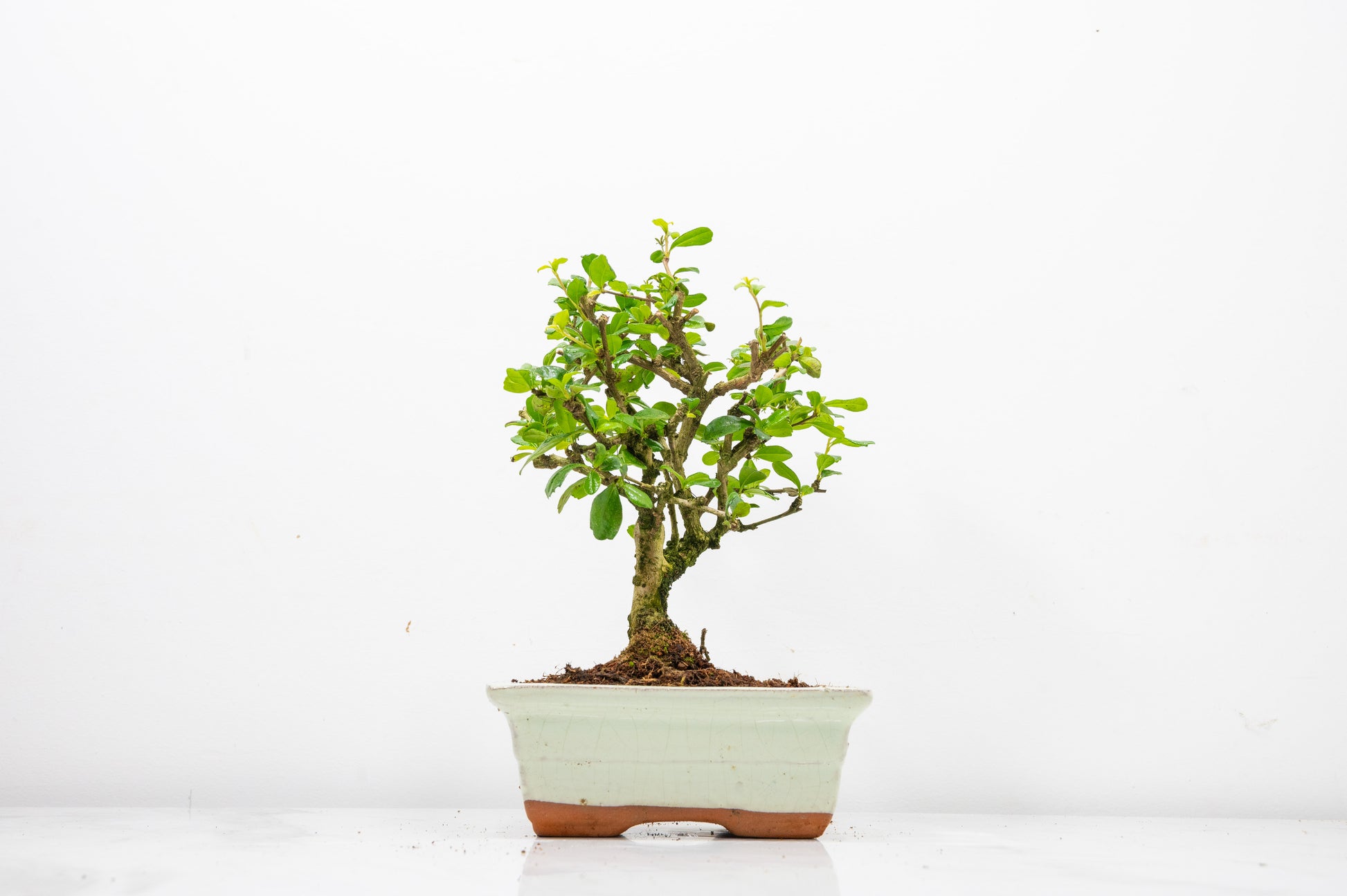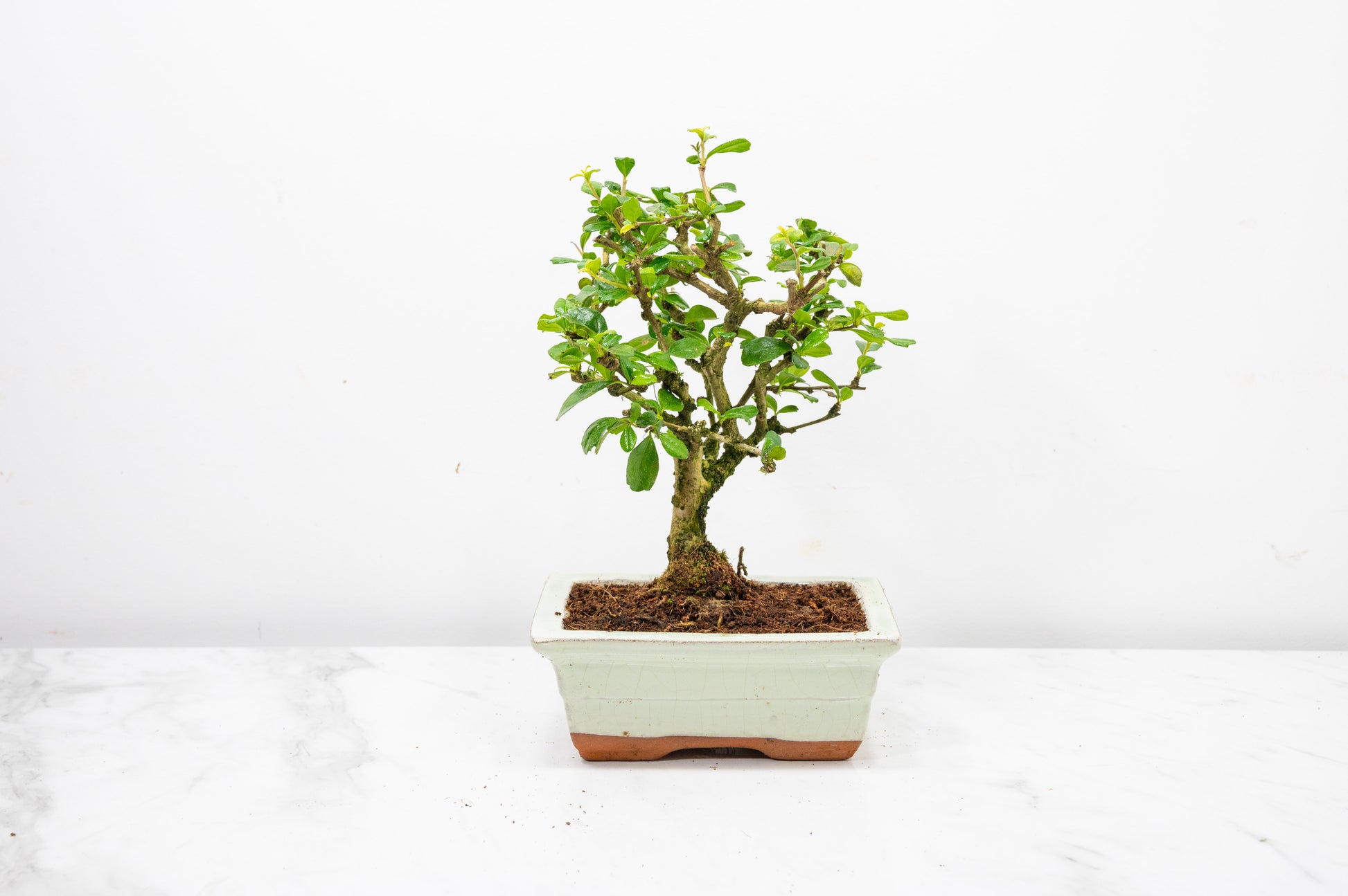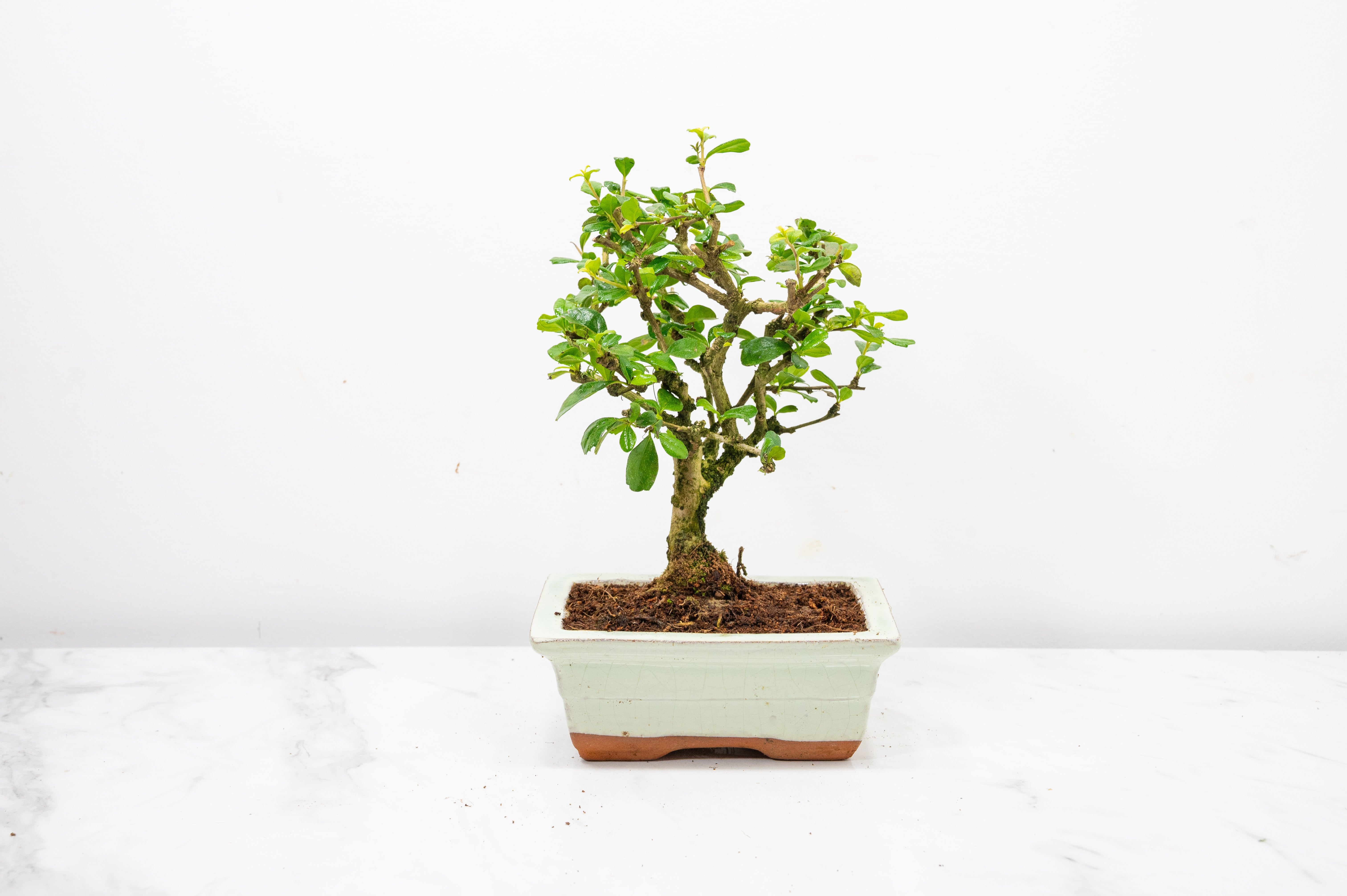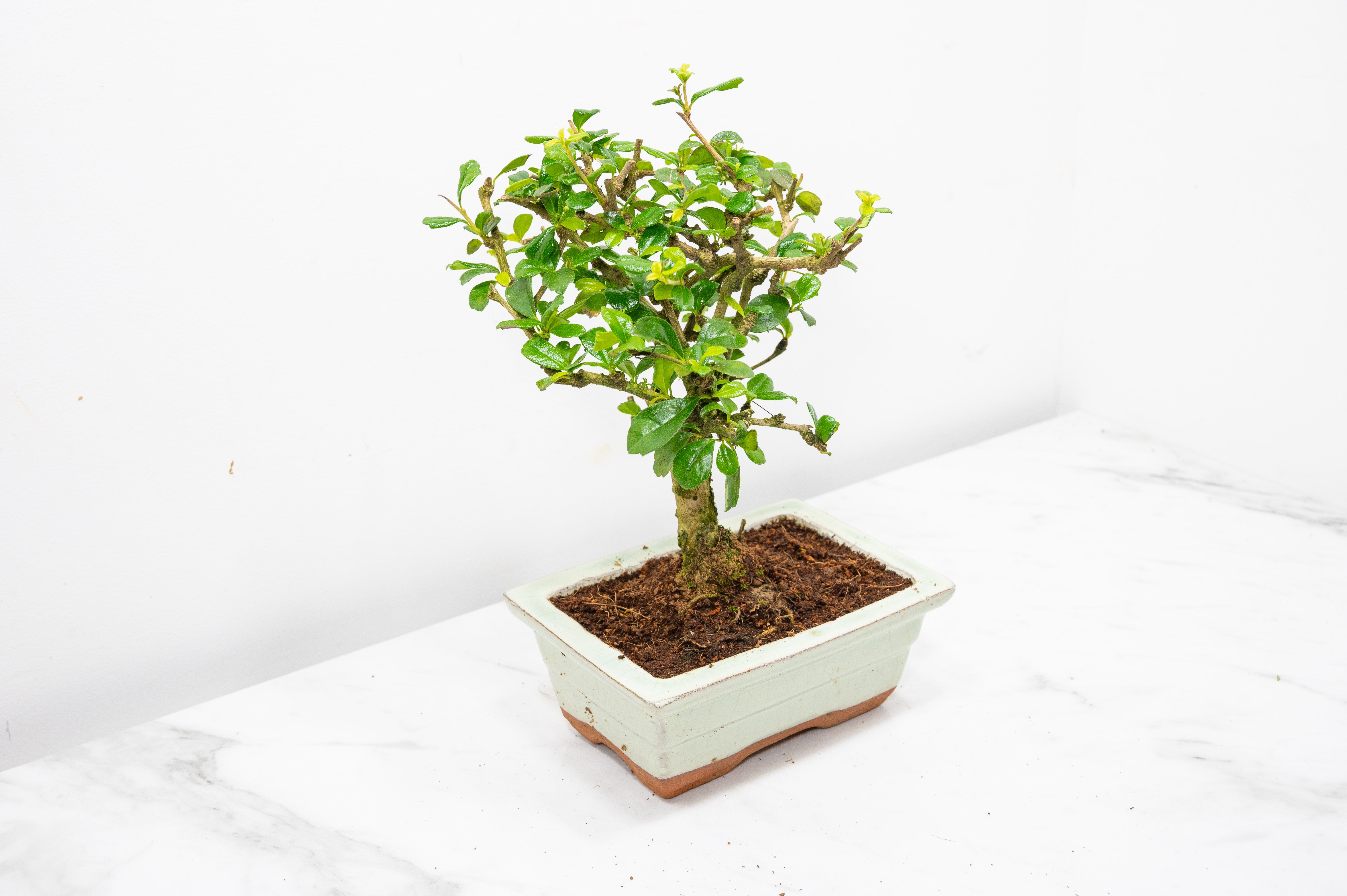 Fukien Tea Tree (Carmona retusa) bonsai thrives in warm, tropical conditions, making it an excellent indoor bonsai. It requires bright, consistent light, ideally from a south or west-facing window, and must be protected from temperatures below . Watering is critical: keep the soil consistently moist but never soggy, watering thoroughly when the top layer feels slightly dry, and increasing humidity with a humidity tray or regular misting is highly beneficial. Fertilise with a balanced bonsai food every 2-4 weeks during the active growing season to support its health, its glossy green leaves, and its delicate white flowers.