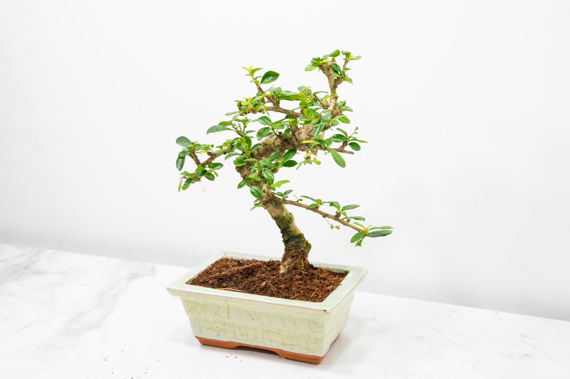 Fukien Tea Tree (Carmona retusa) bonsai thrives in warm, tropical conditions, making it an excellent indoor bonsai. It requires bright, consistent light, ideally from a south or west-facing window, and must be protected from temperatures below 15∘C. Watering is critical: keep the soil consistently moist but never soggy, watering thoroughly when the top layer feels slightly dry, and increasing humidity with a humidity tray or regular misting is highly beneficial. Fertilise with a balanced bonsai food every 2-4 weeks during the active growing season to support its health, its glossy green leaves, and its delicate white flowers.