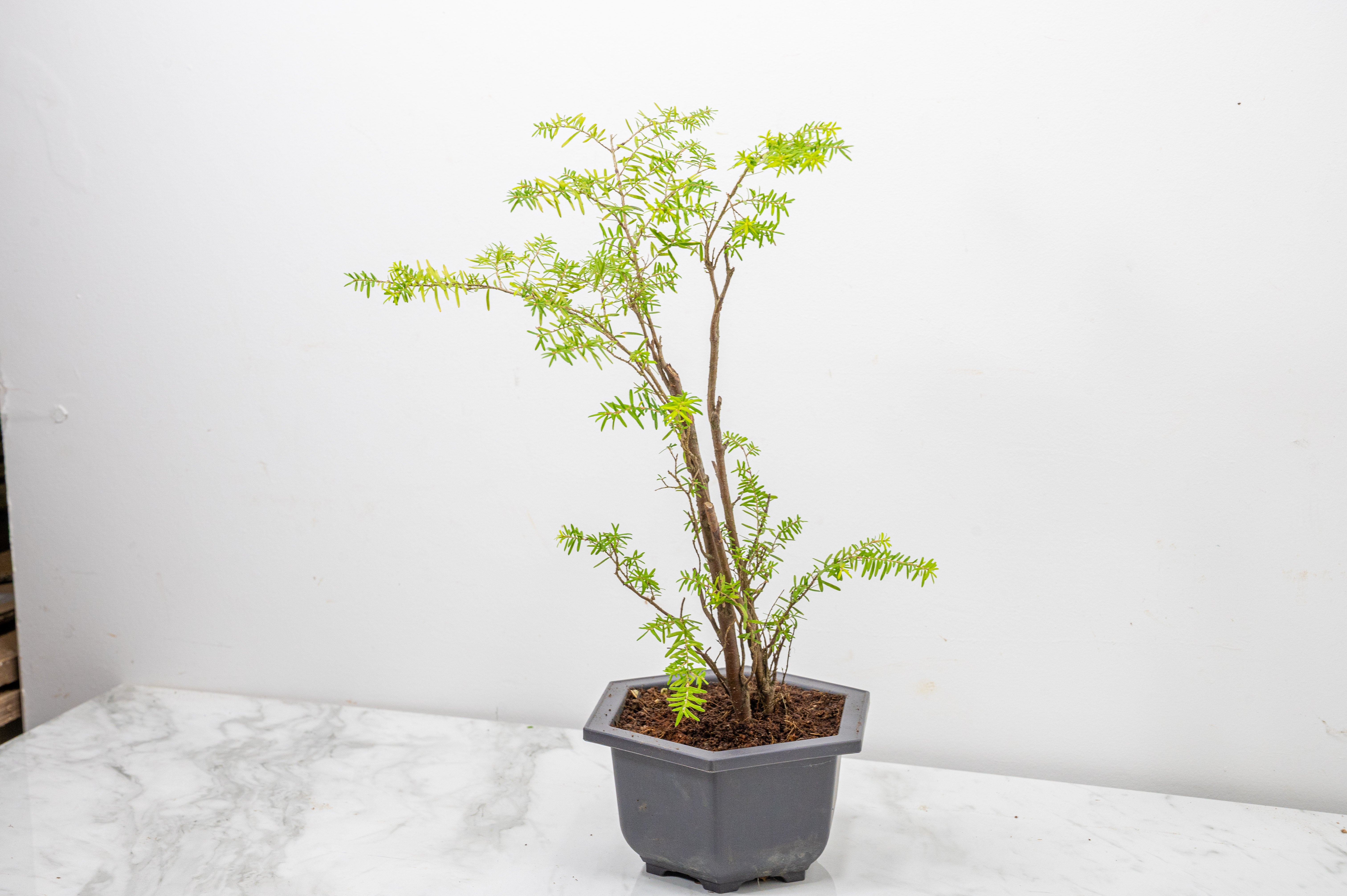 Hemlock Bonsai (Tsuga) is a graceful evergreen conifer, highly valued for its fine, feathery foliage, delicate branching structure, and naturally weeping habit. While its general care is straightforward, requiring consistent moisture and protection from intense sun, it is generally considered an intermediate difficulty due to its sensitivity to drying out and the need for careful wiring to avoid marking its fast-swelling bark. Hemlock 4+ Year old STARTER - tsuga Note: Collection 2020 Latest Re-pot : Spring 2024 Photographs: November 2025 Currently in a Plastic Development Pot |