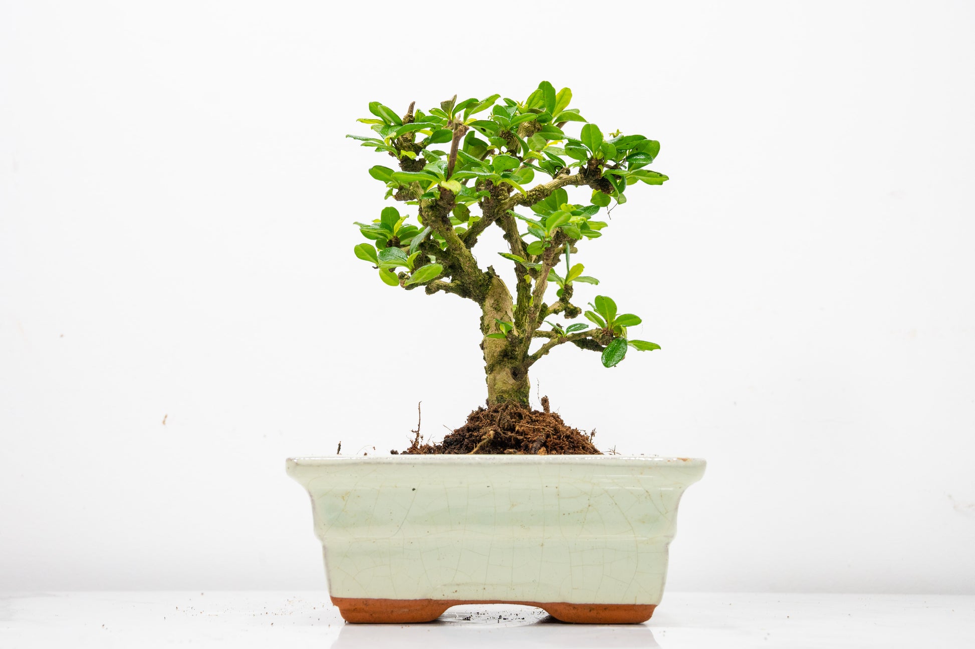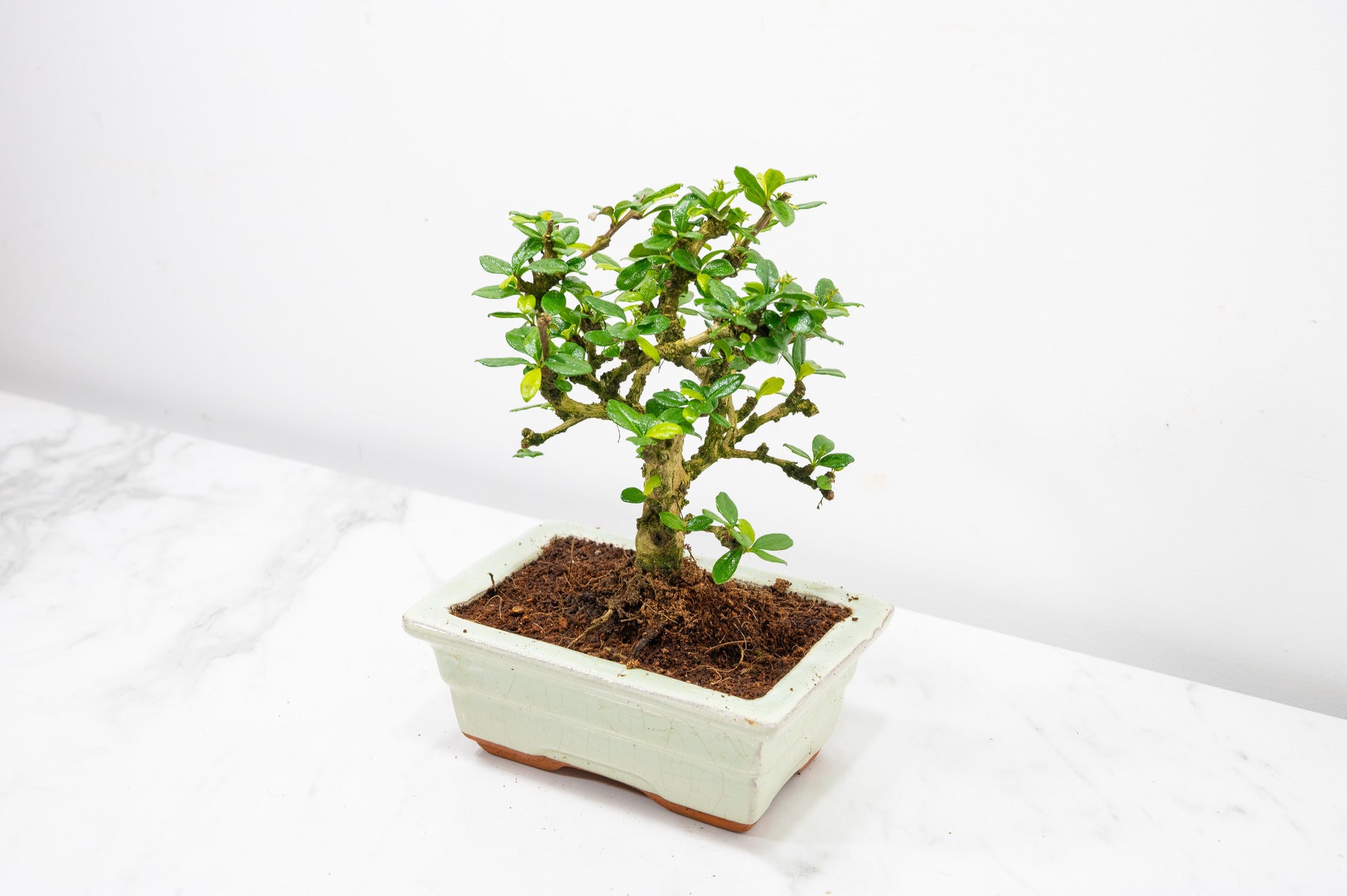 Fukien Tea Tree (Carmona retusa) bonsai thrives in warm, tropical conditions, making it an excellent indoor bonsai. It requires bright, consistent light, ideally from a south or west-facing window, and must be protected from temperatures below . Watering is critical: keep the soil consistently moist but never soggy, watering thoroughly when the top layer feels slightly dry, and increasing humidity with a humidity tray or regular misting is highly beneficial. Fertilise with a balanced bonsai food every 2-4 weeks during the active growing season to support its health, its glossy green leaves, and its delicate white flowers.