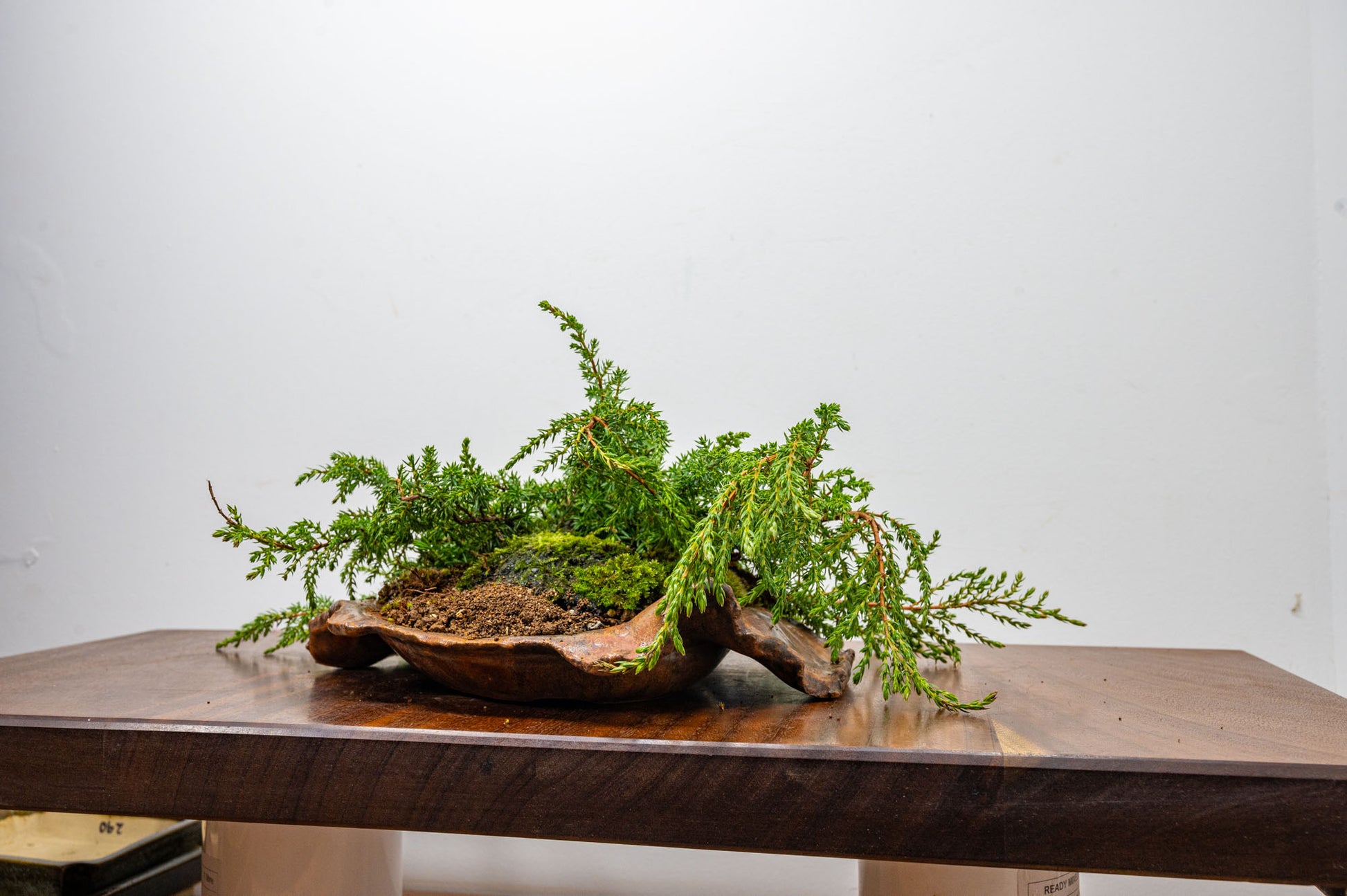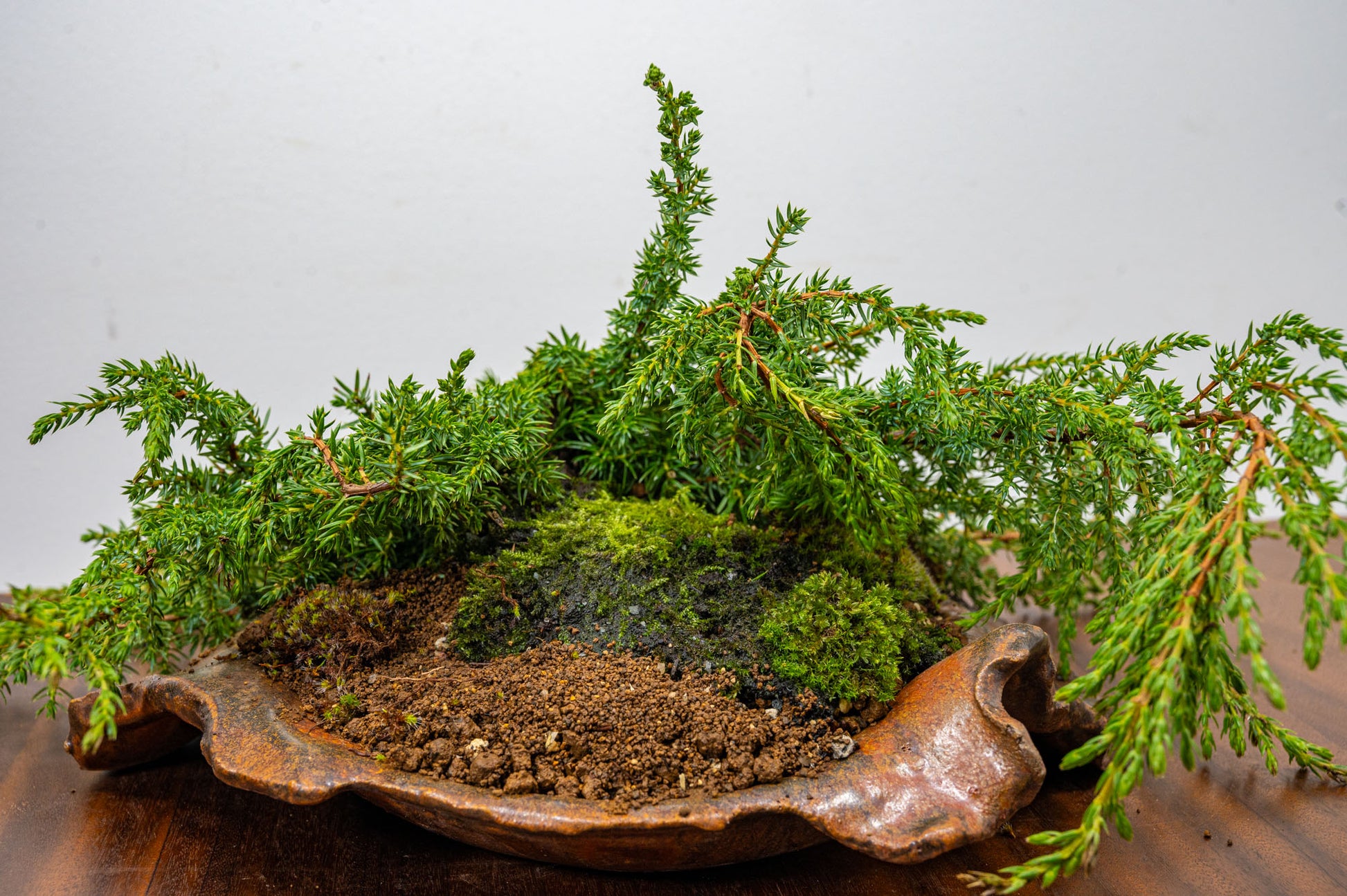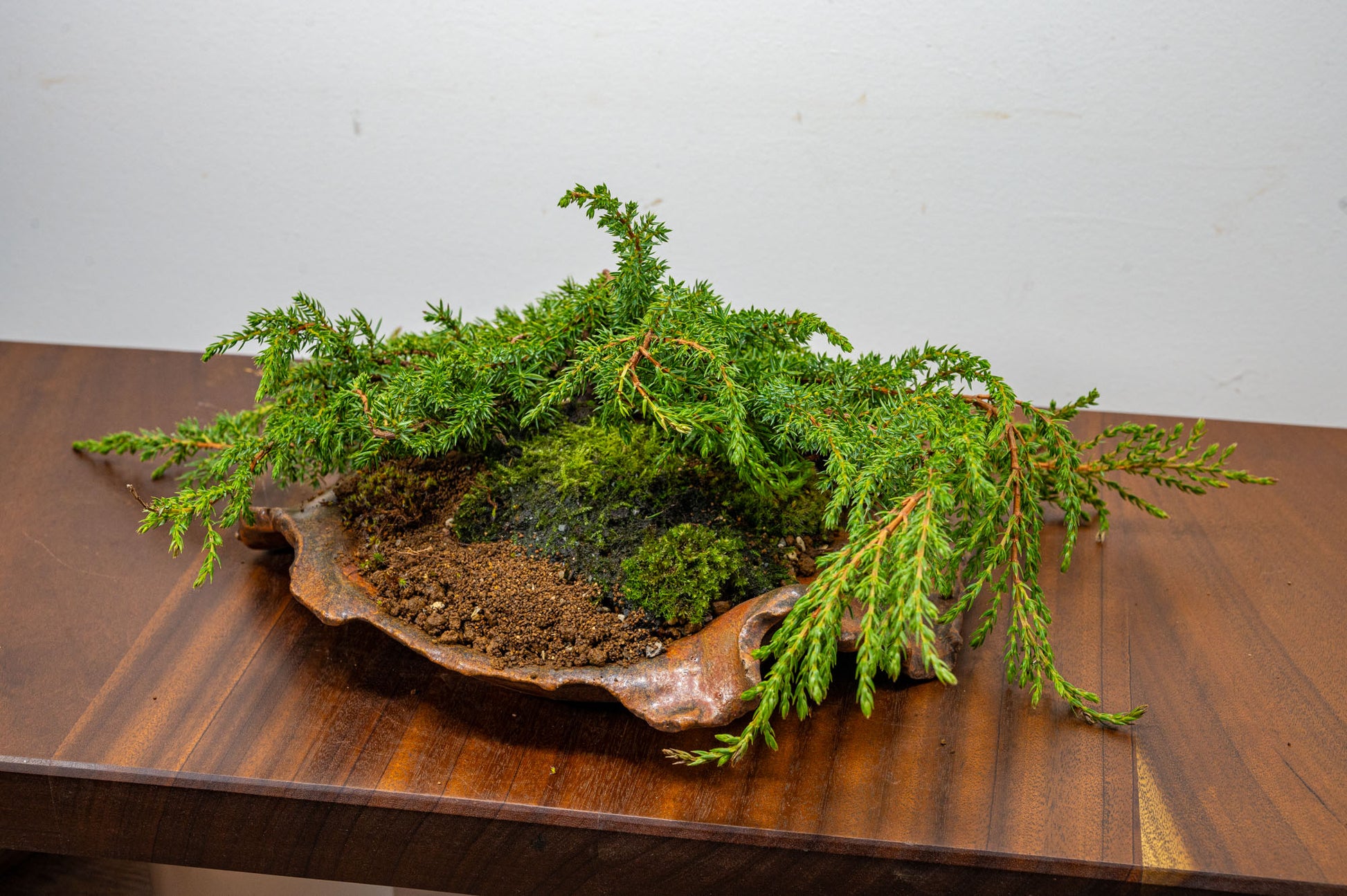 Juniper -Juniperus communis - Bonsai - 28cm Abstract Ember Brown Vessel