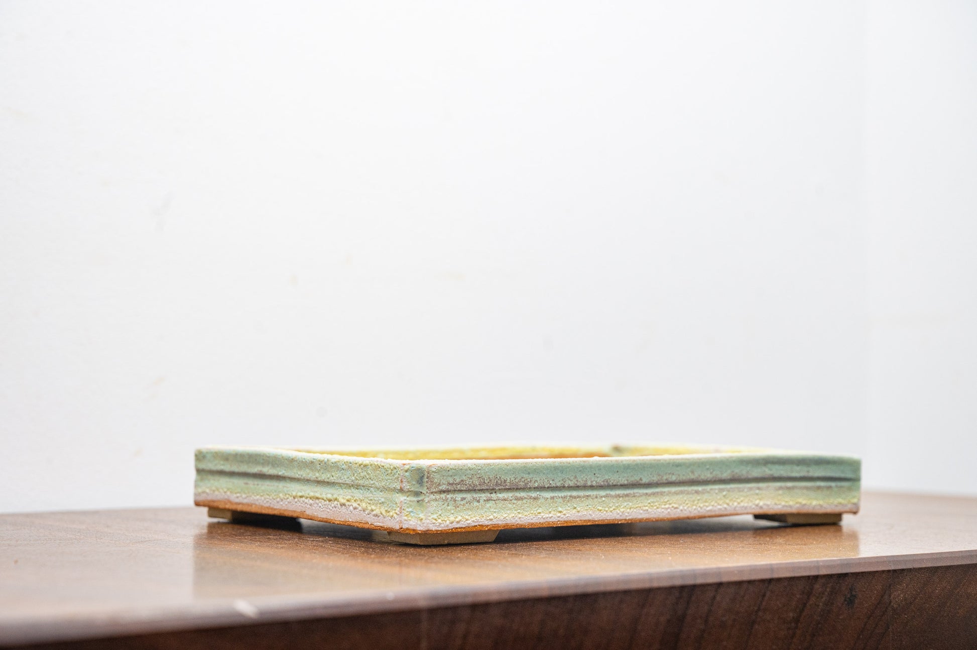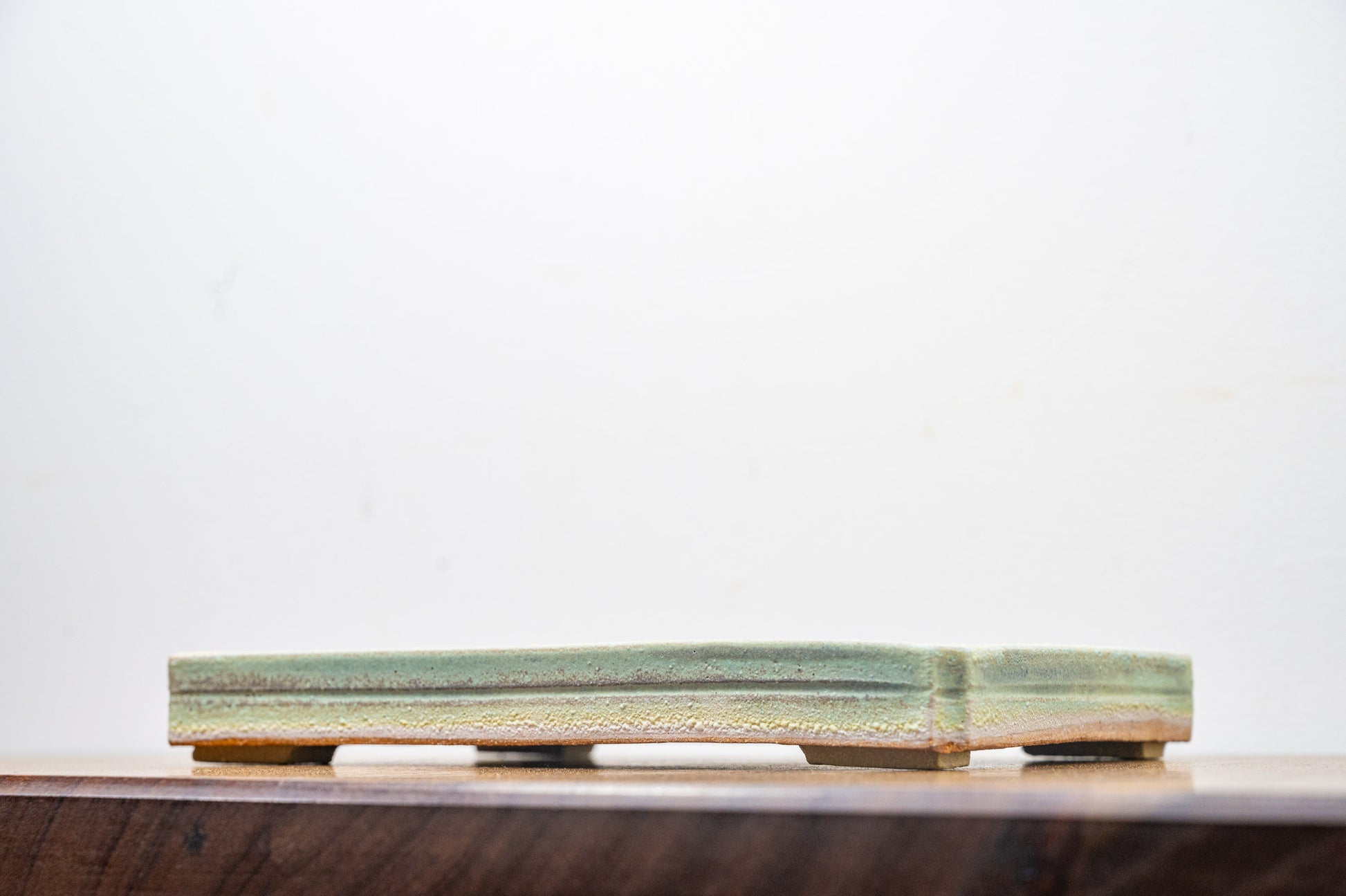 Textured Light Green Shallow Rectangular Ceramic Bonsai Dish 21cm