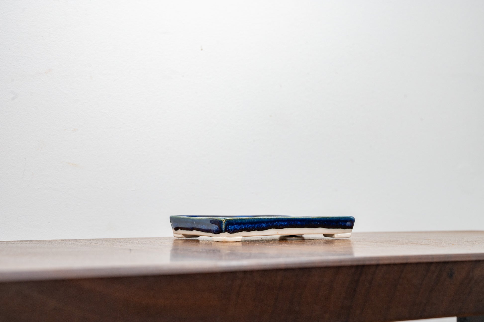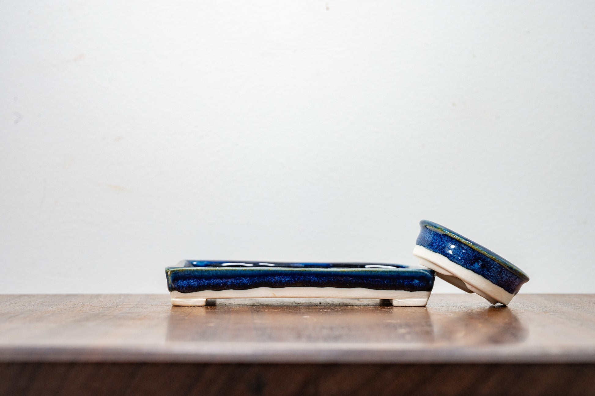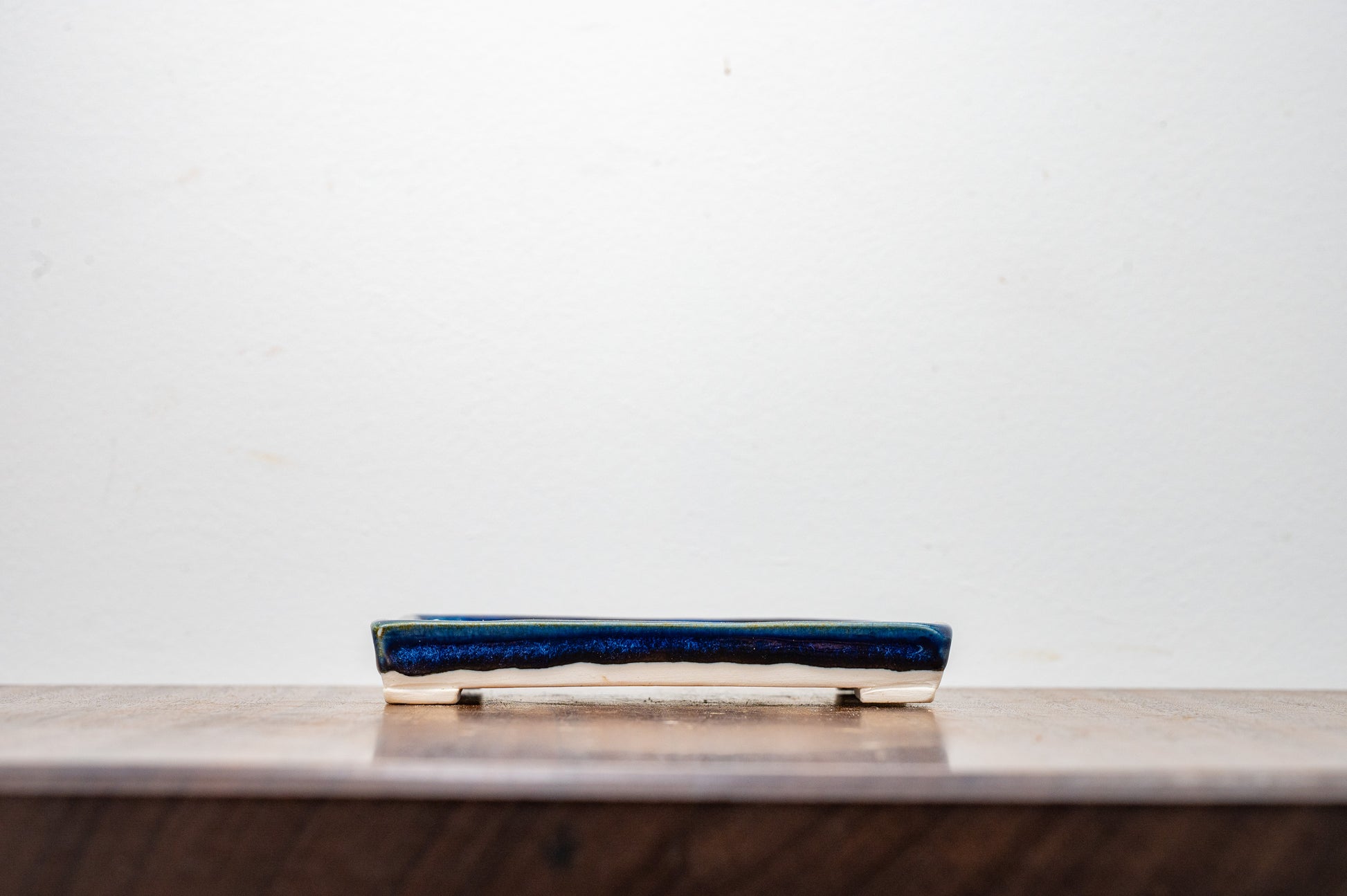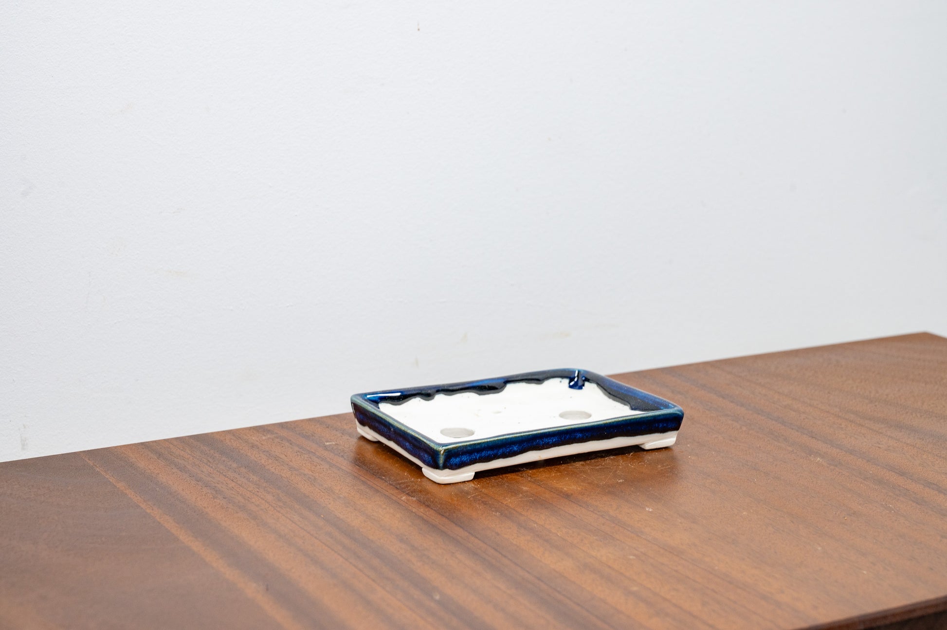 Rectangular Dark Blue Opal Shallow White Stoneware Bonsai Dish 12.5cm