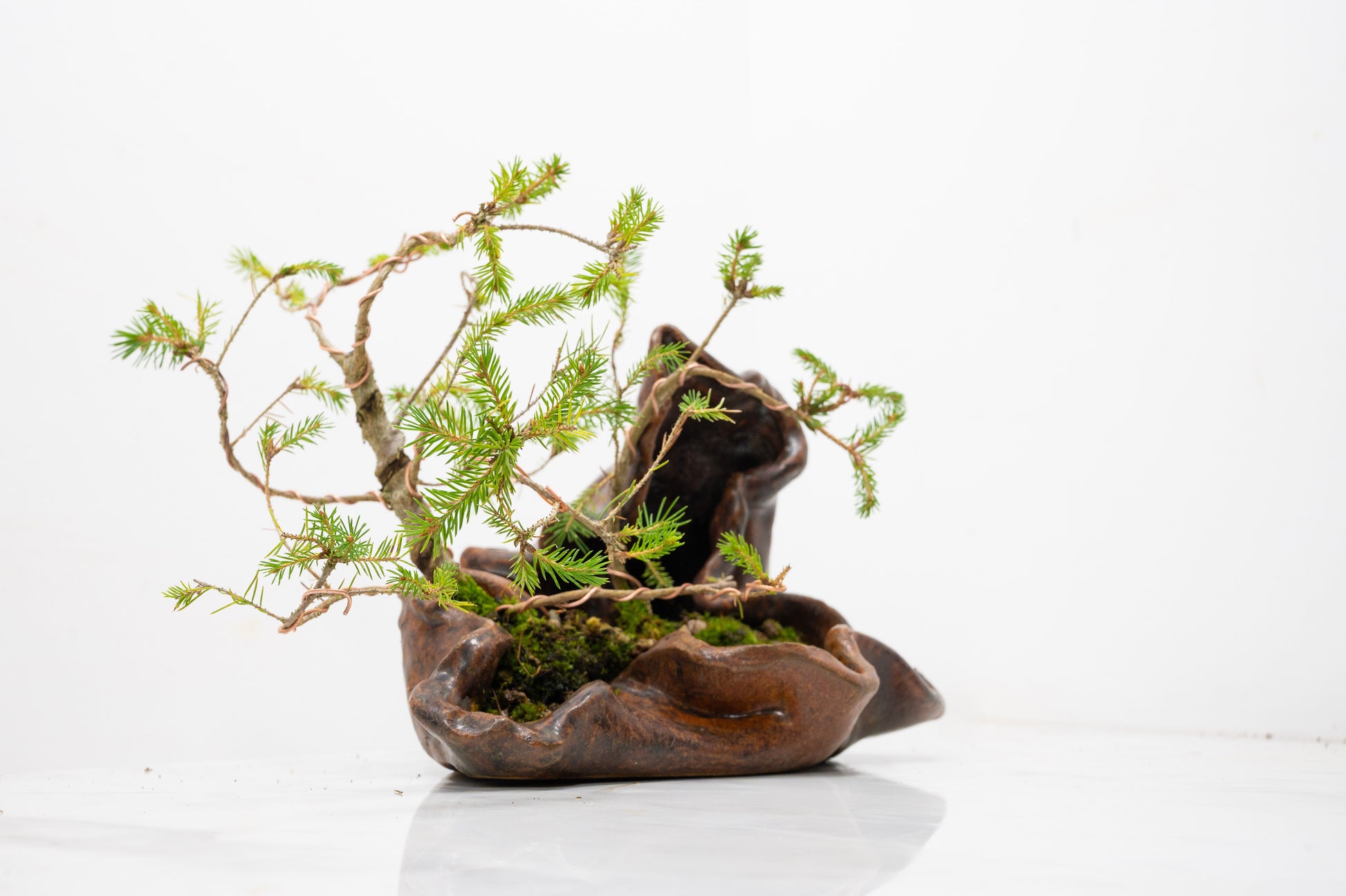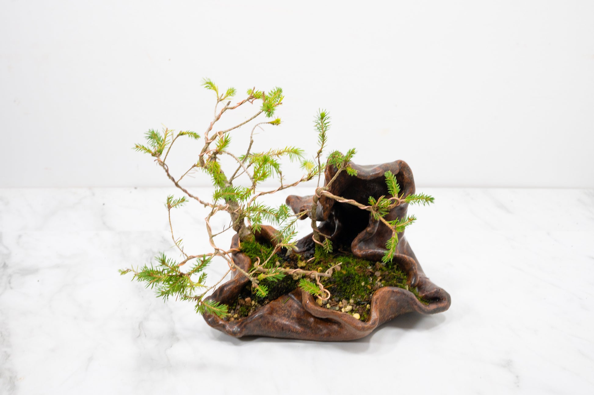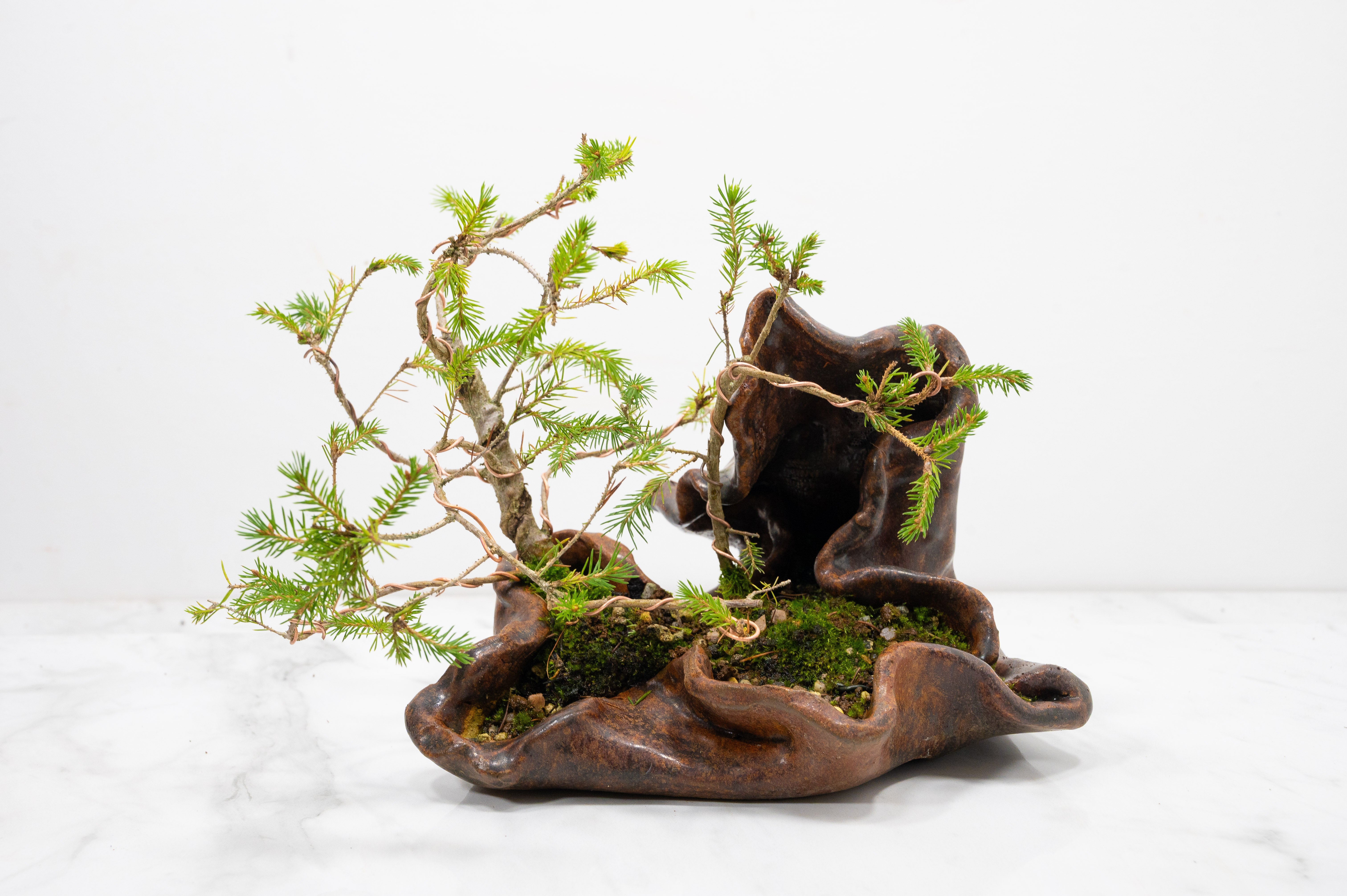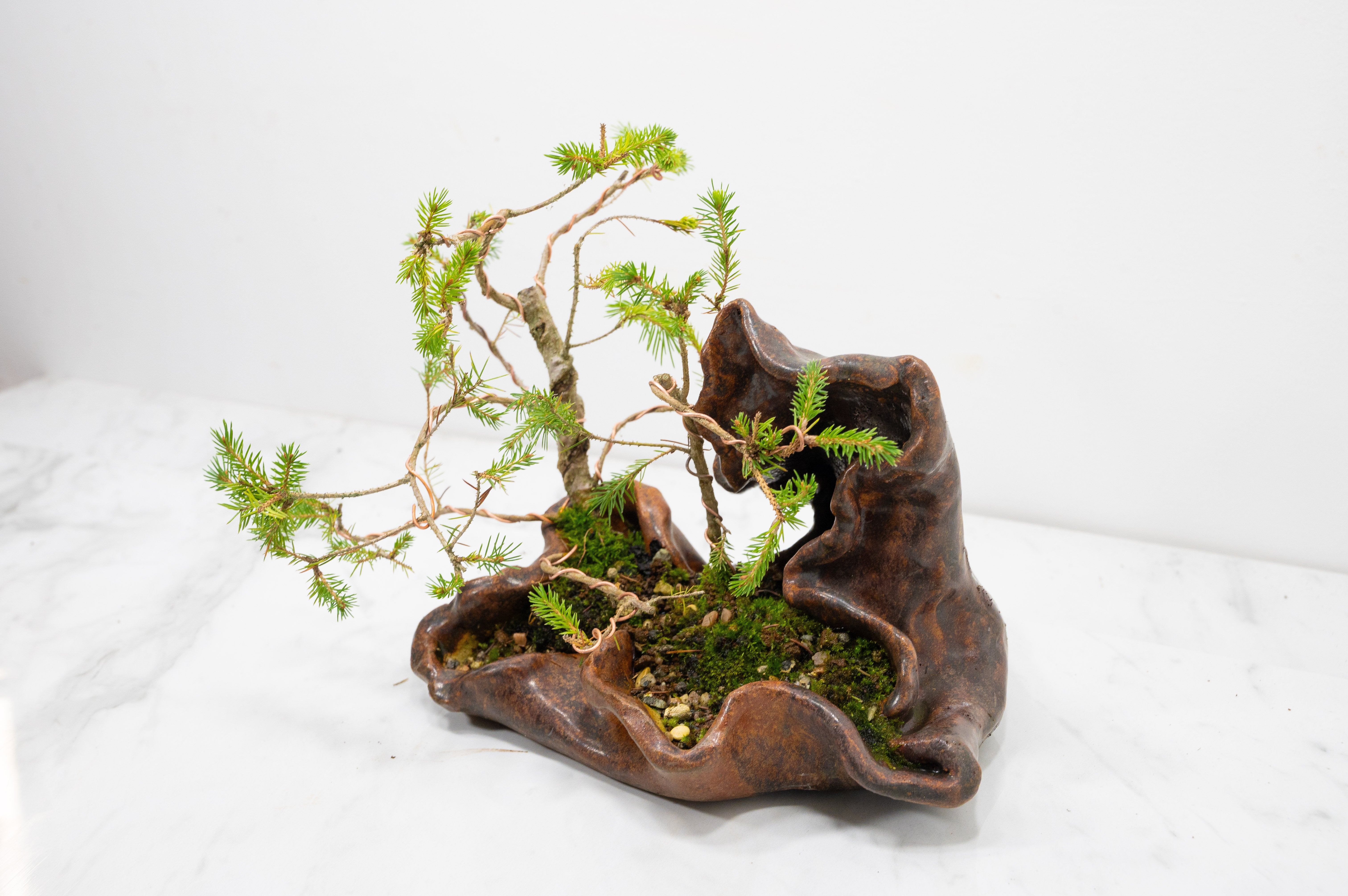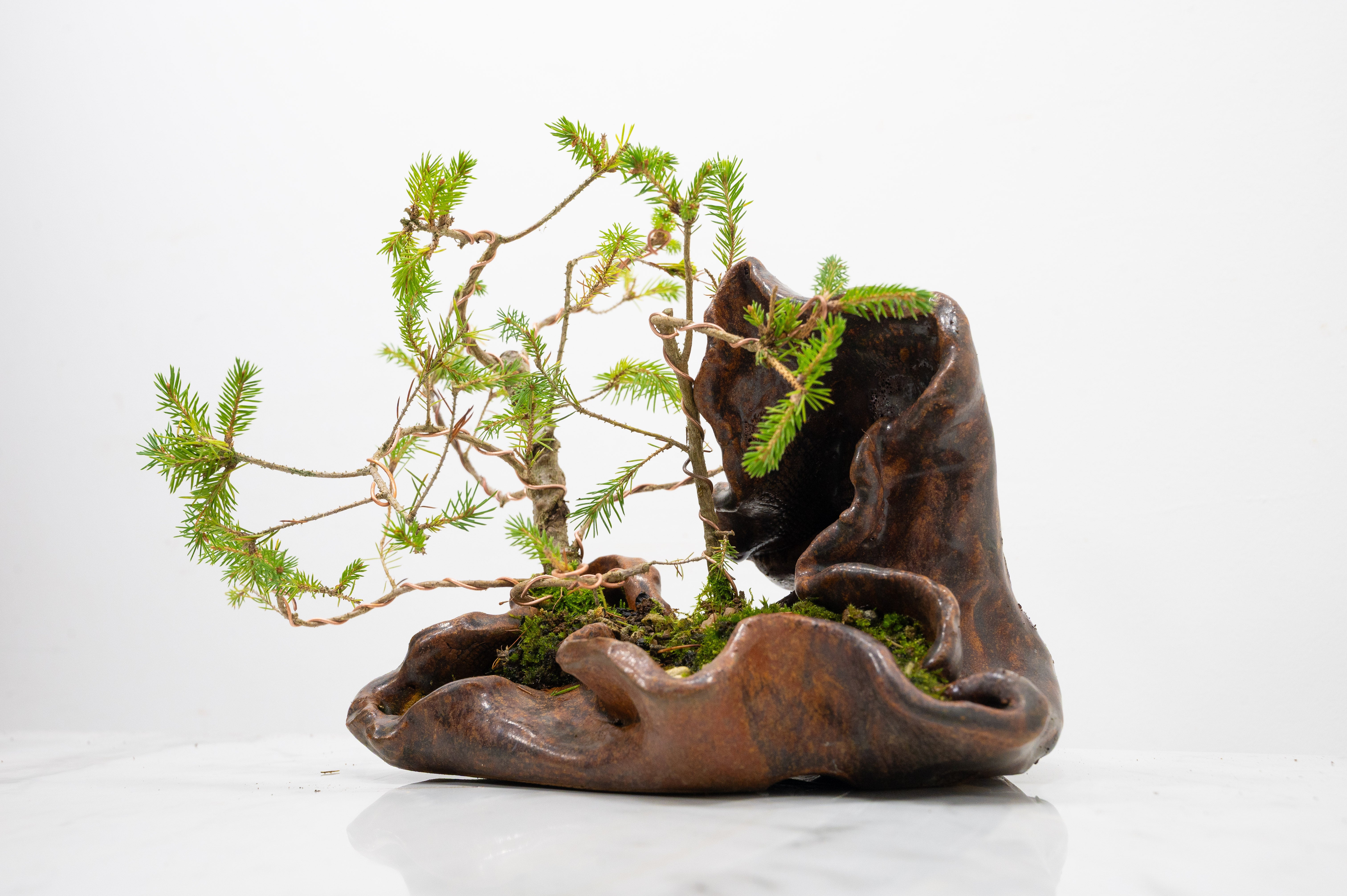 Spruce Bonsai a Ceramic Ember Brown Abstract