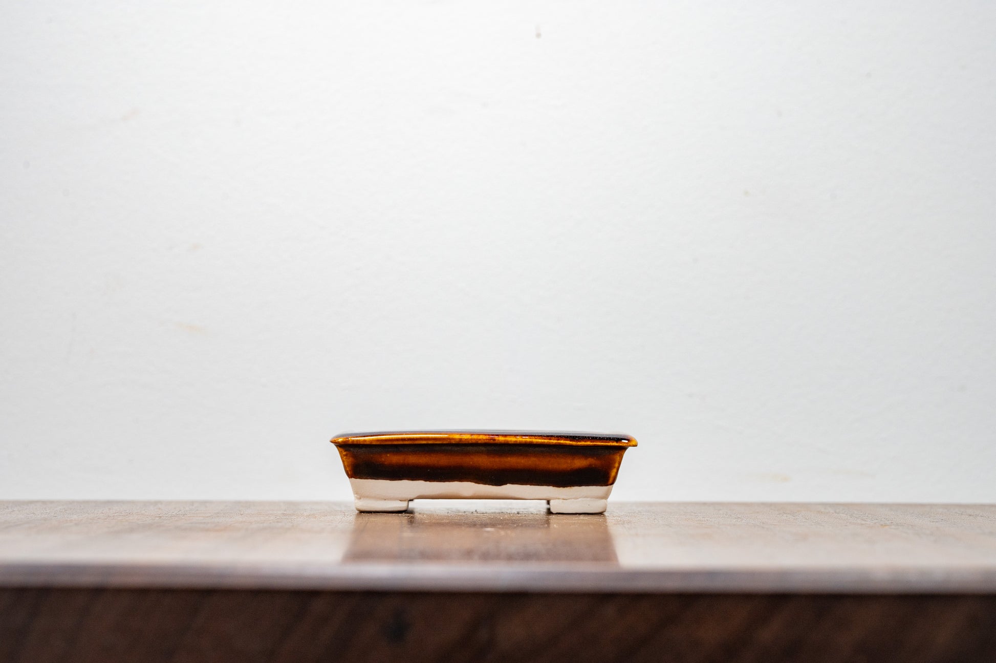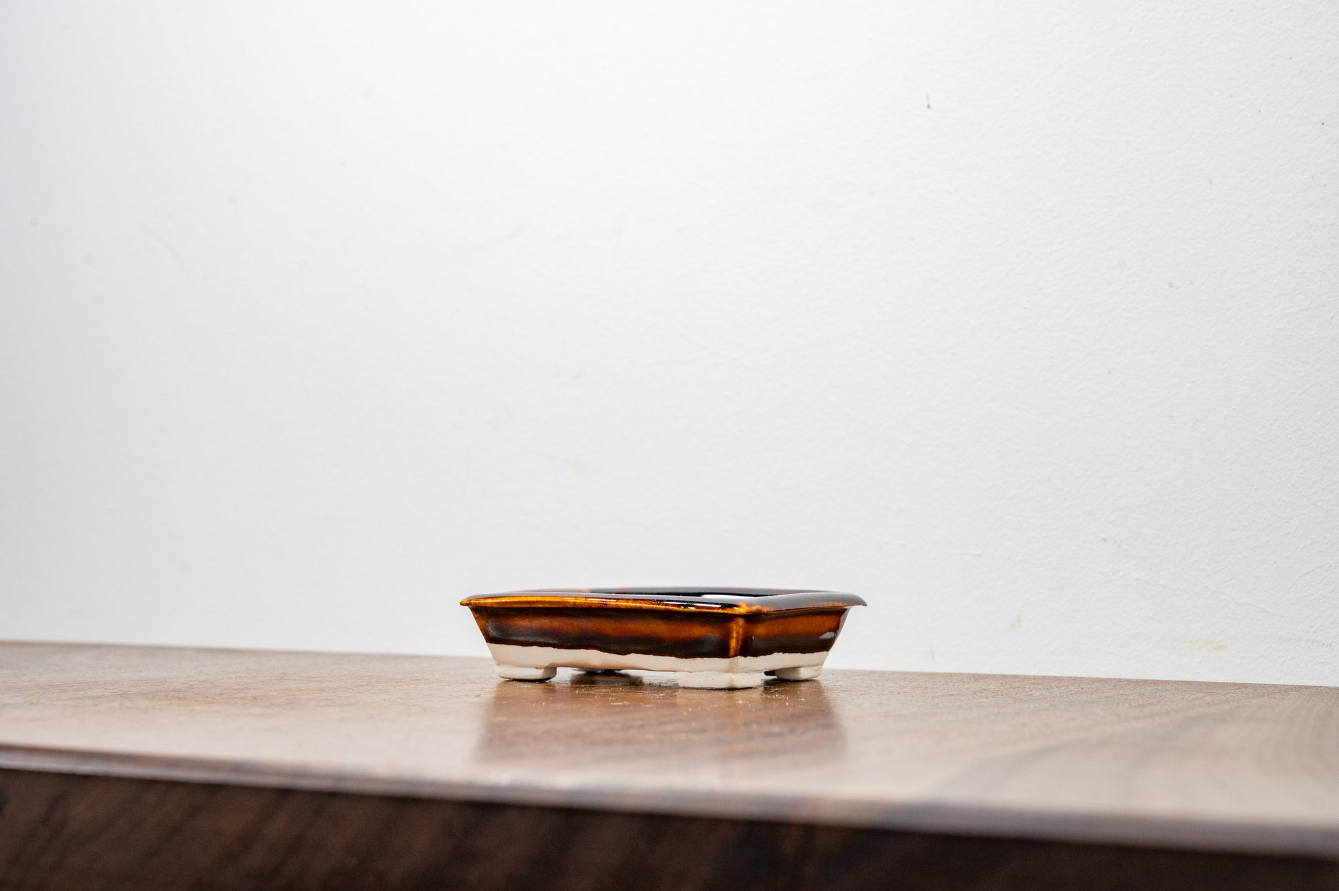 Dark Brown Rectangular White Stoneware Bonsai Pot 9cm